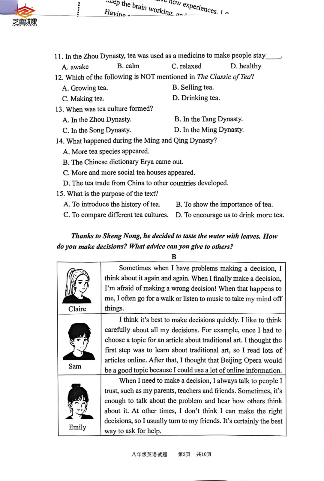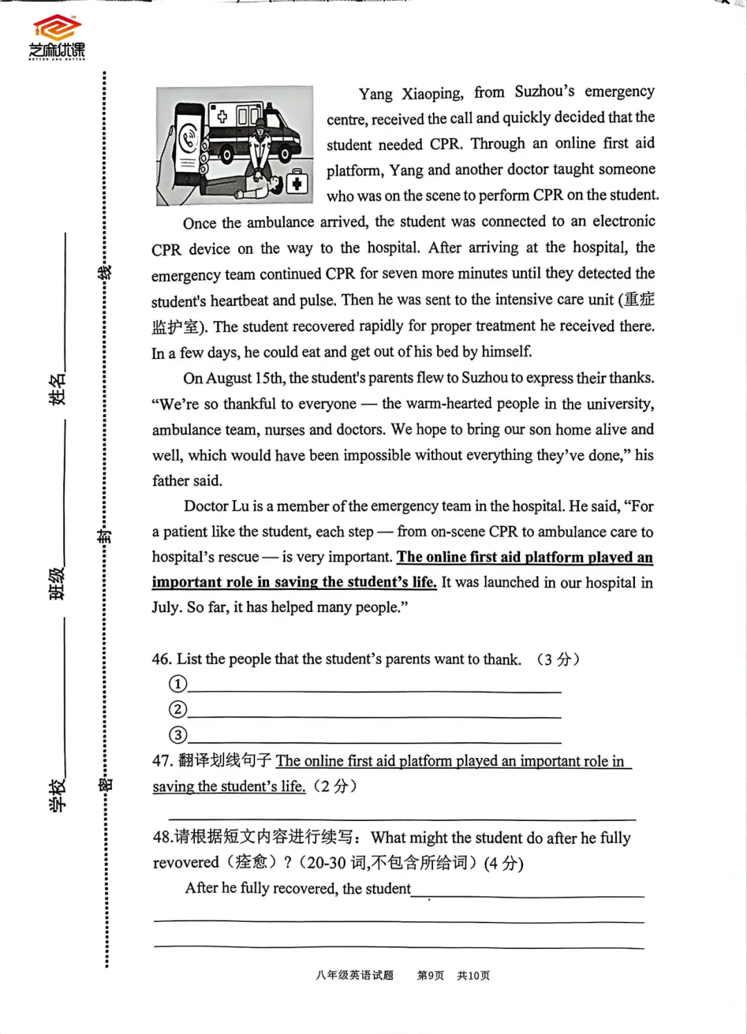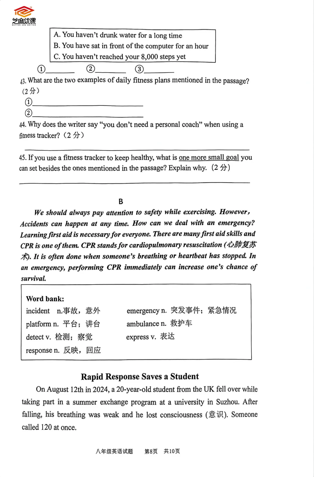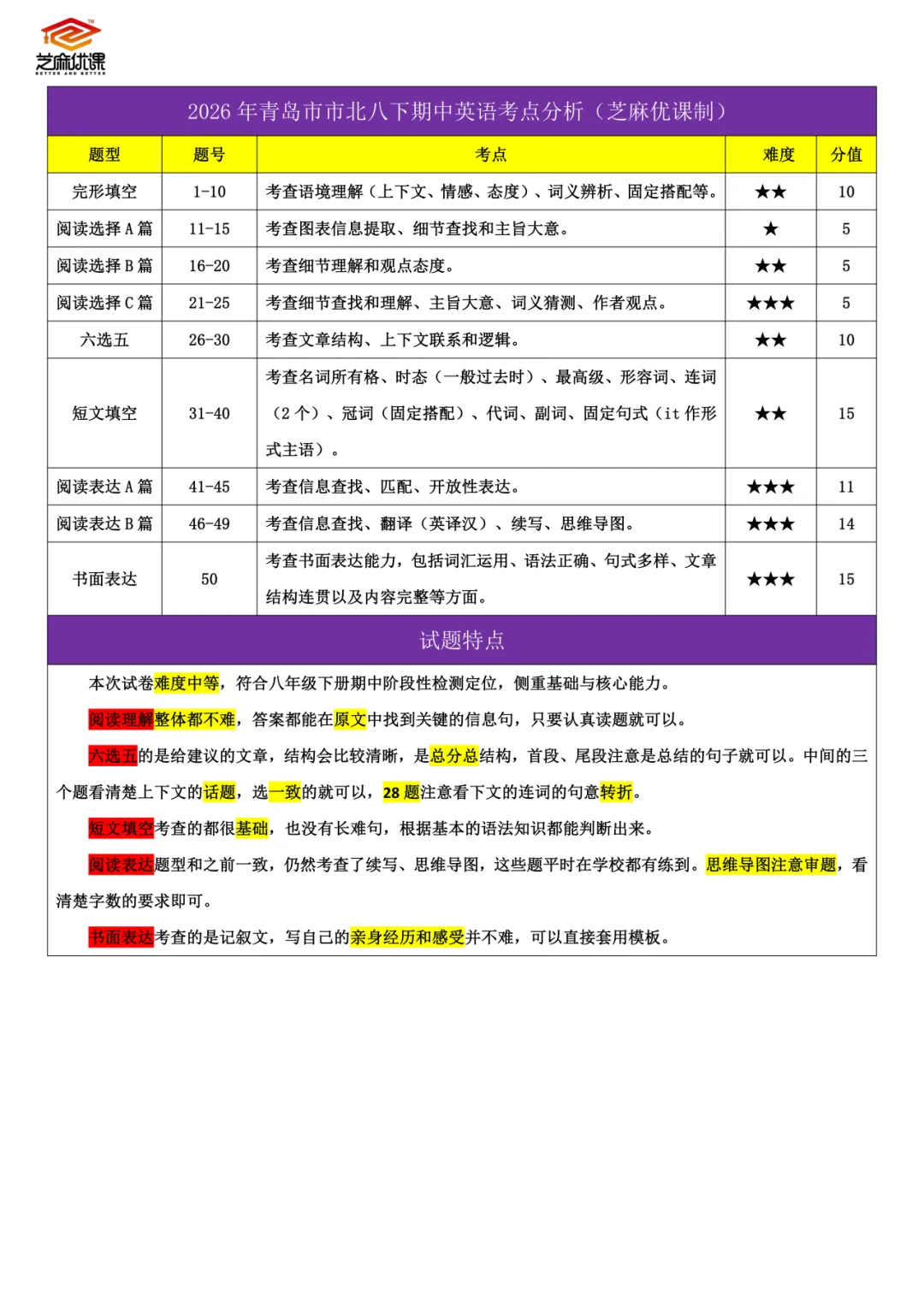 初中试卷|2026上海黄浦 初三二模语文试卷及答案(word版,免费获取)