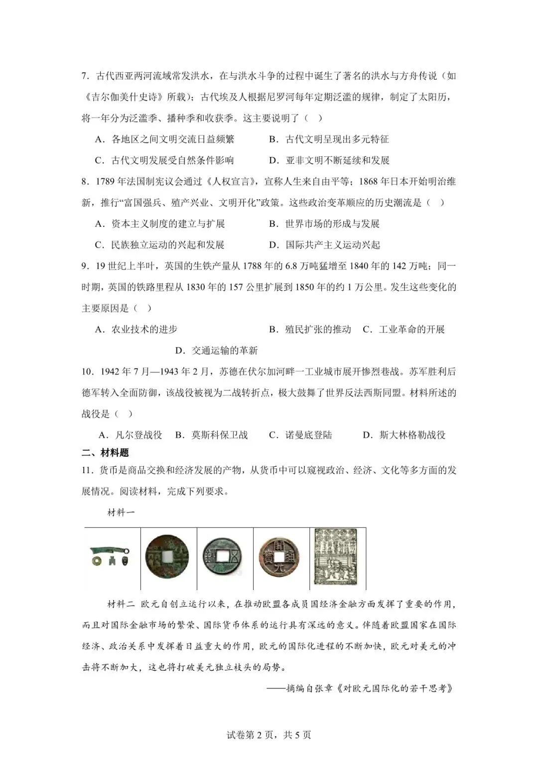 >2026年天水市甘谷县中考二模历史试卷