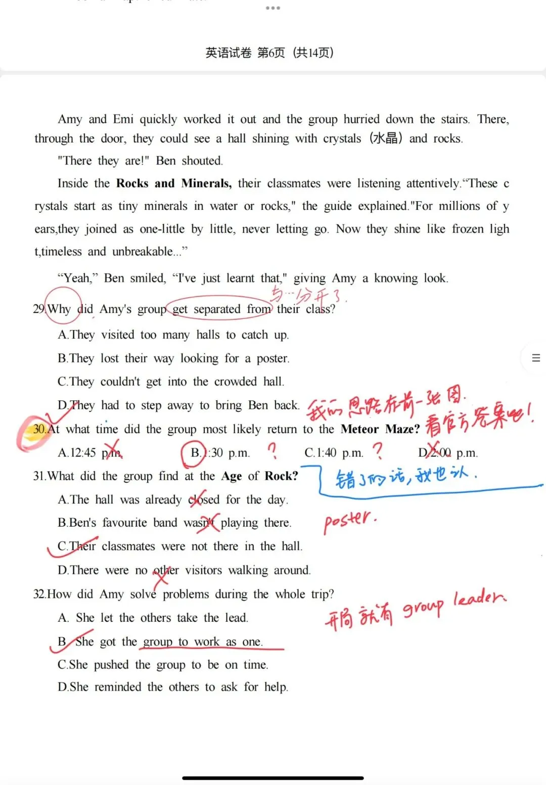 初三的一模周日考完,一直在扒拉卷子,终于今天拿到试卷,立刻开工,我拿着红笔,仔仔细细地从头到尾刷了一遍。