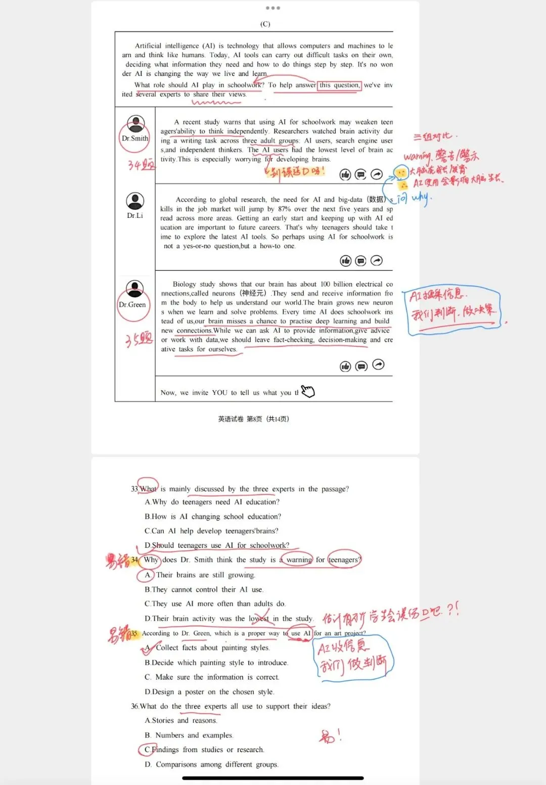 大错特错。这篇探讨“AI在学业中的角色”,命题组煞费苦心。