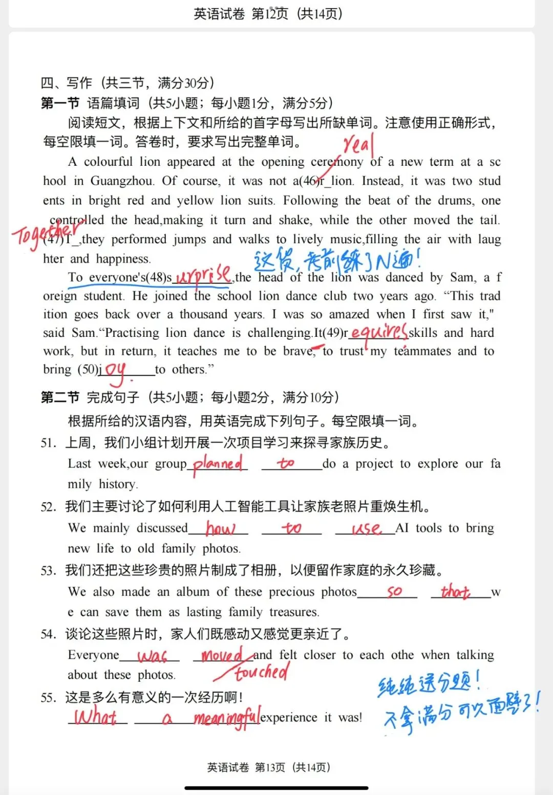 我们再来看看二卷的语篇填词和完成句子。