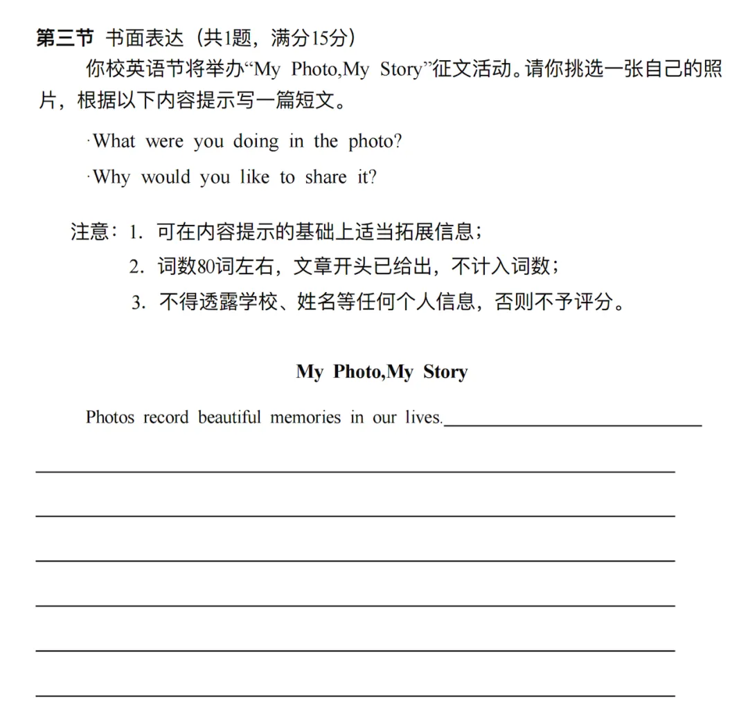 最后,聊聊这次一模的作文题:“My Photo, My Story”。