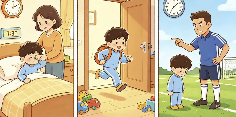 小男孩迟到,足球教练很生气