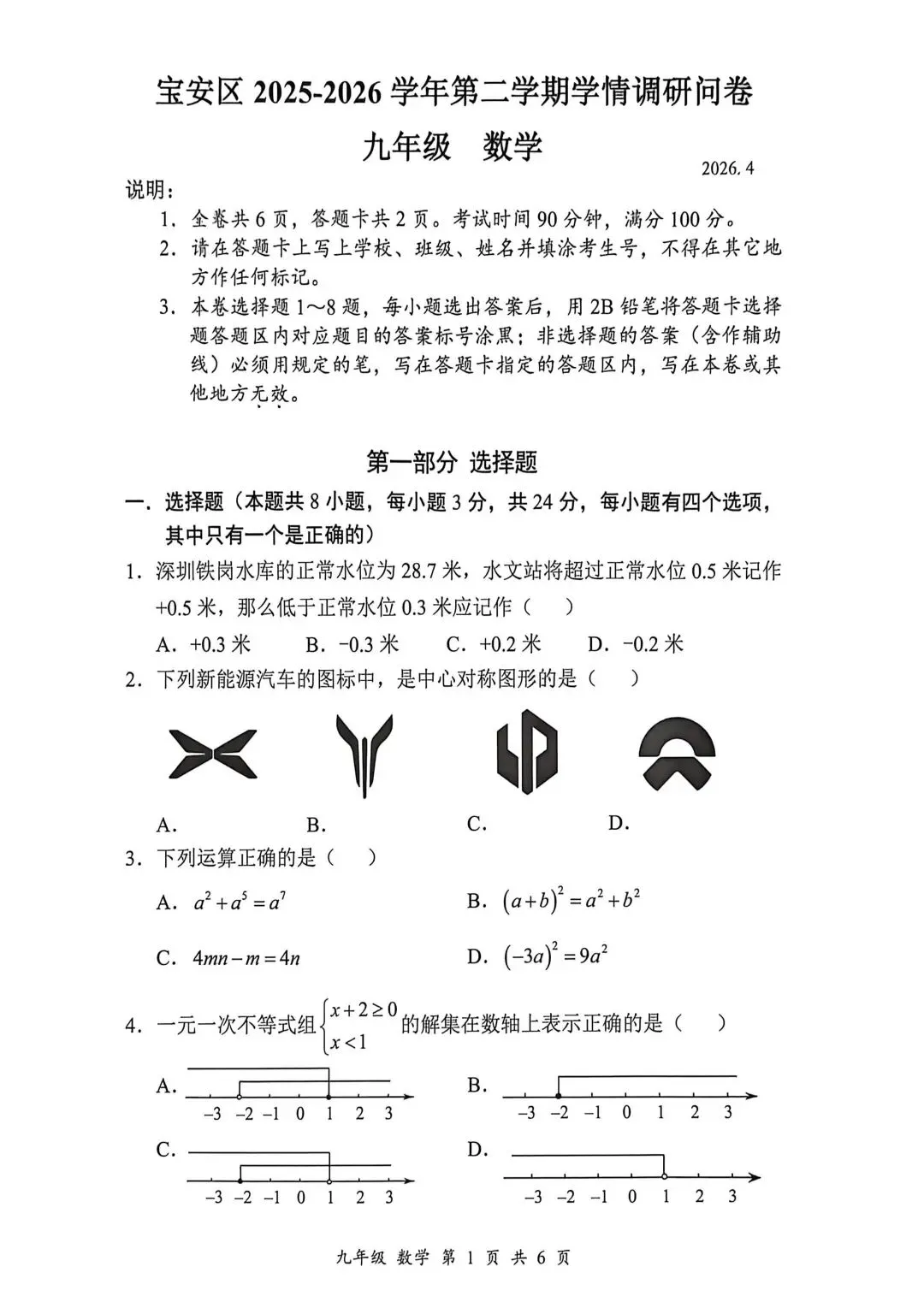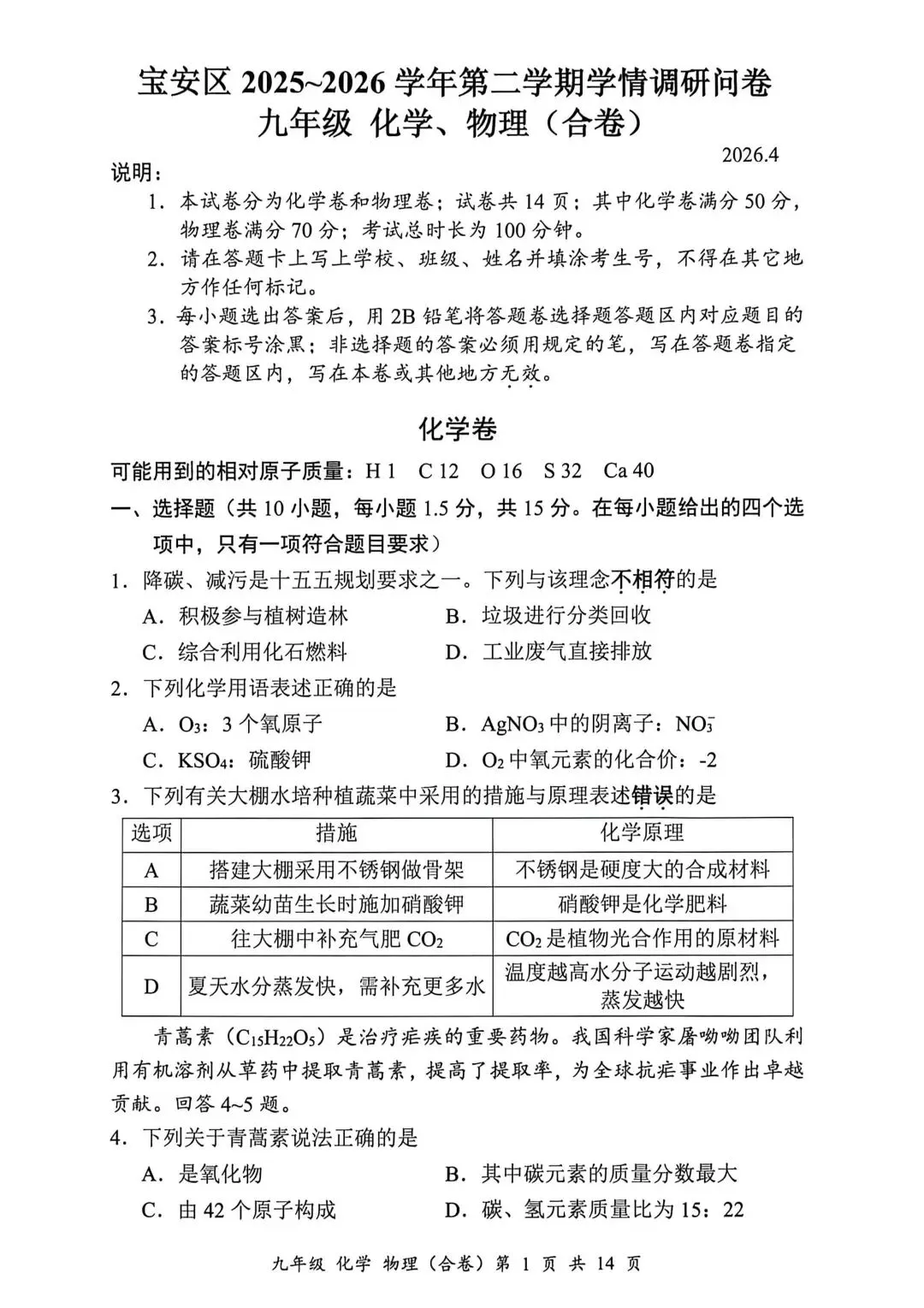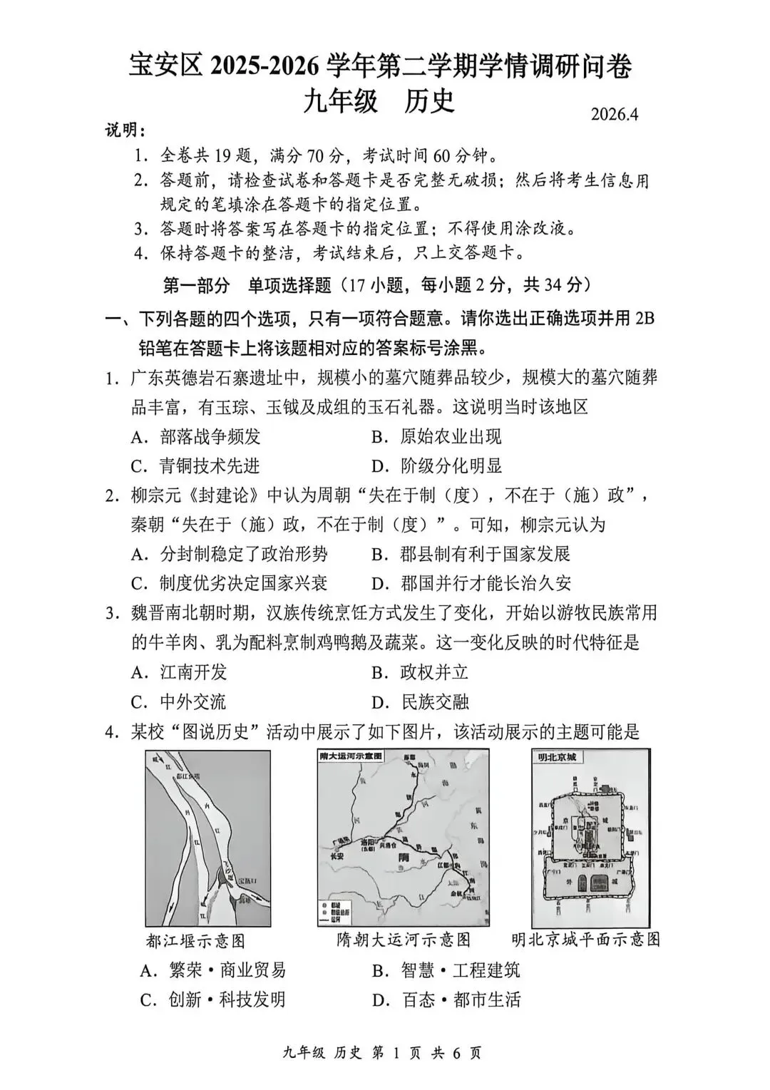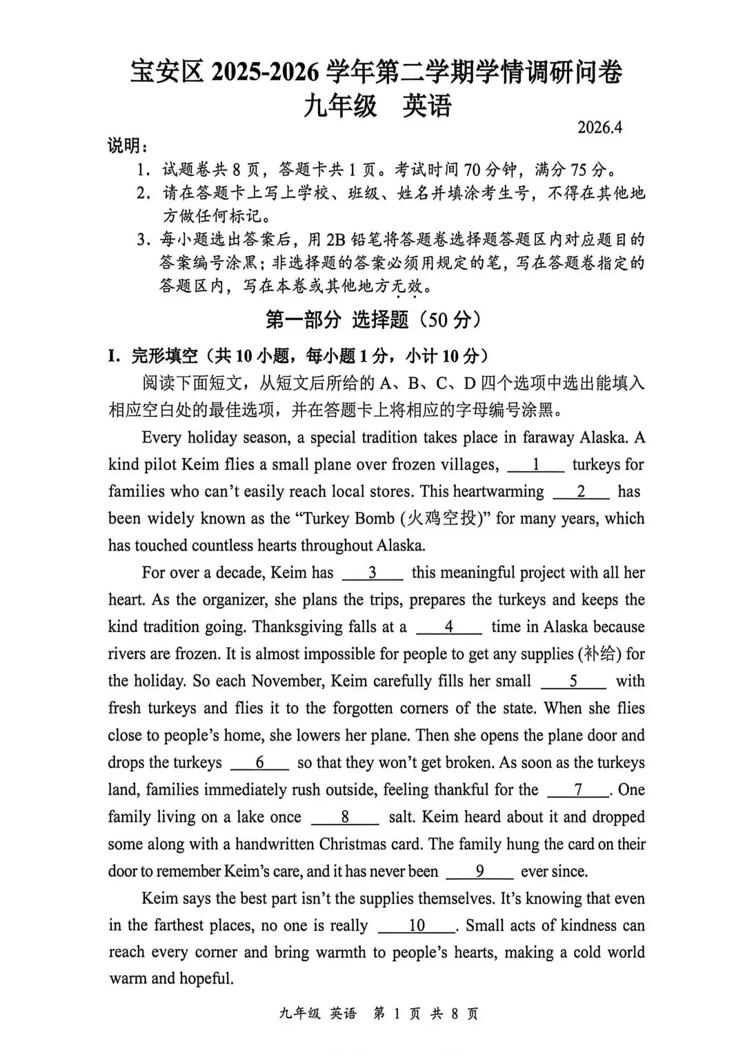 (宝安区2025-2026学年九年级第二学期学情调研问卷)
