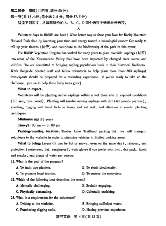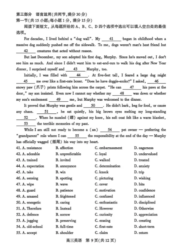 2026届上海市长宁区初三二模英语试卷和答案解析(附写作范文)