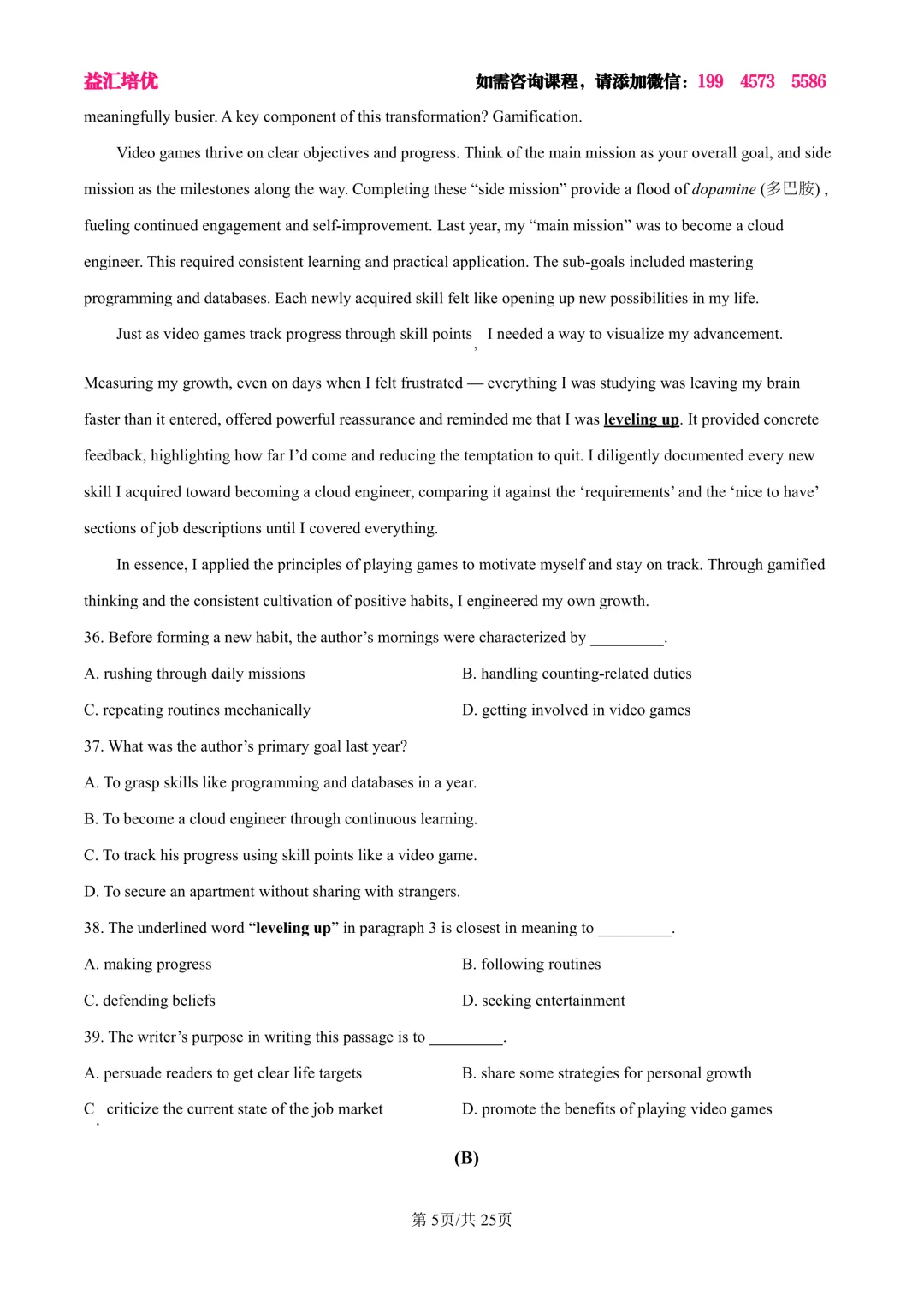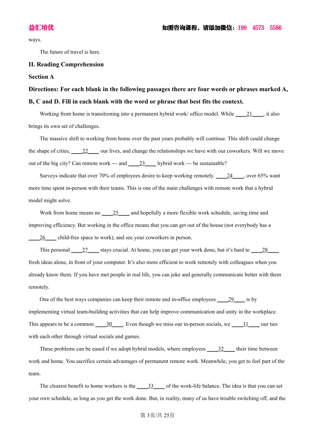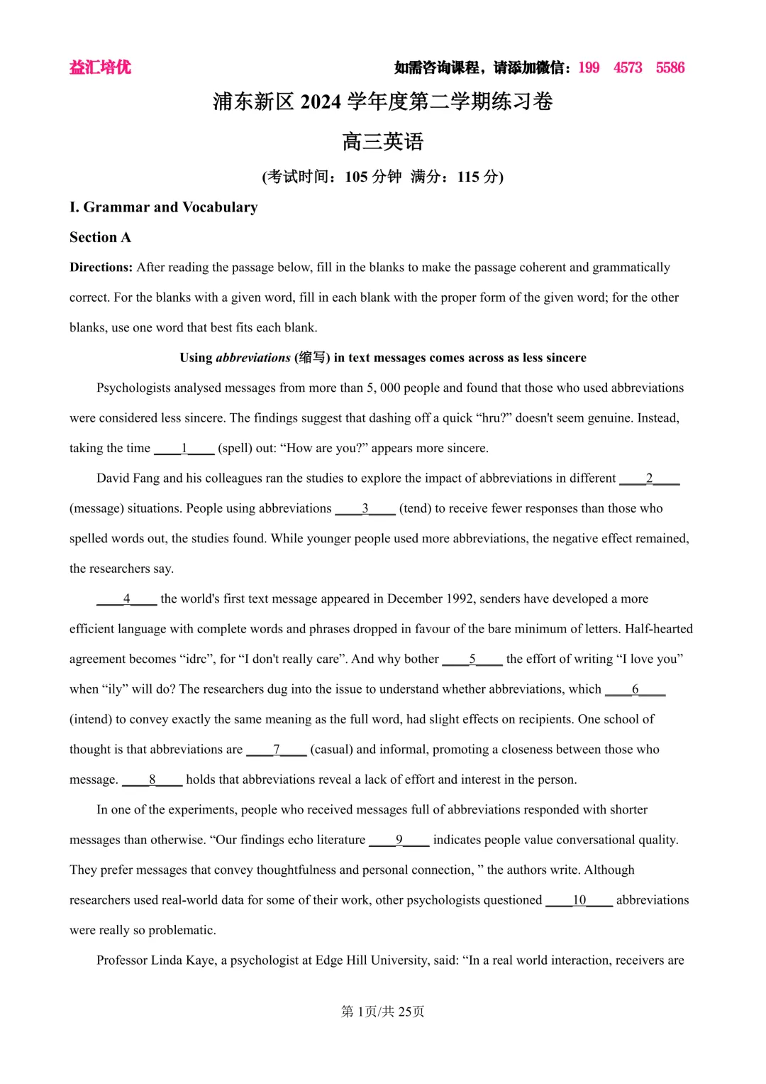 >浦东新区2025届高三英语三模试卷及答案