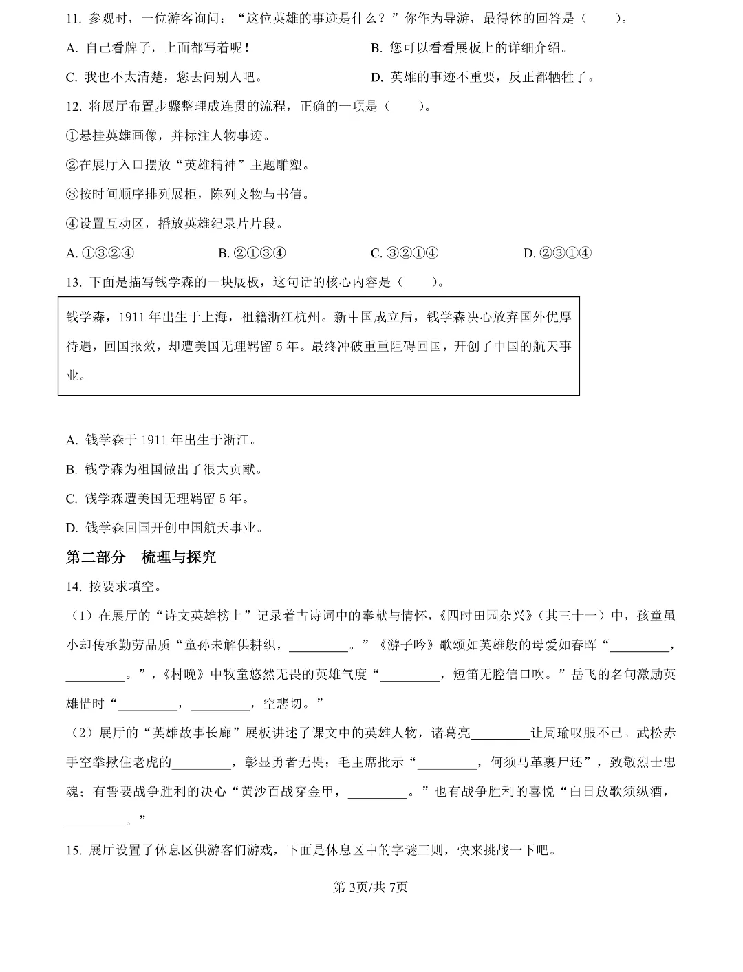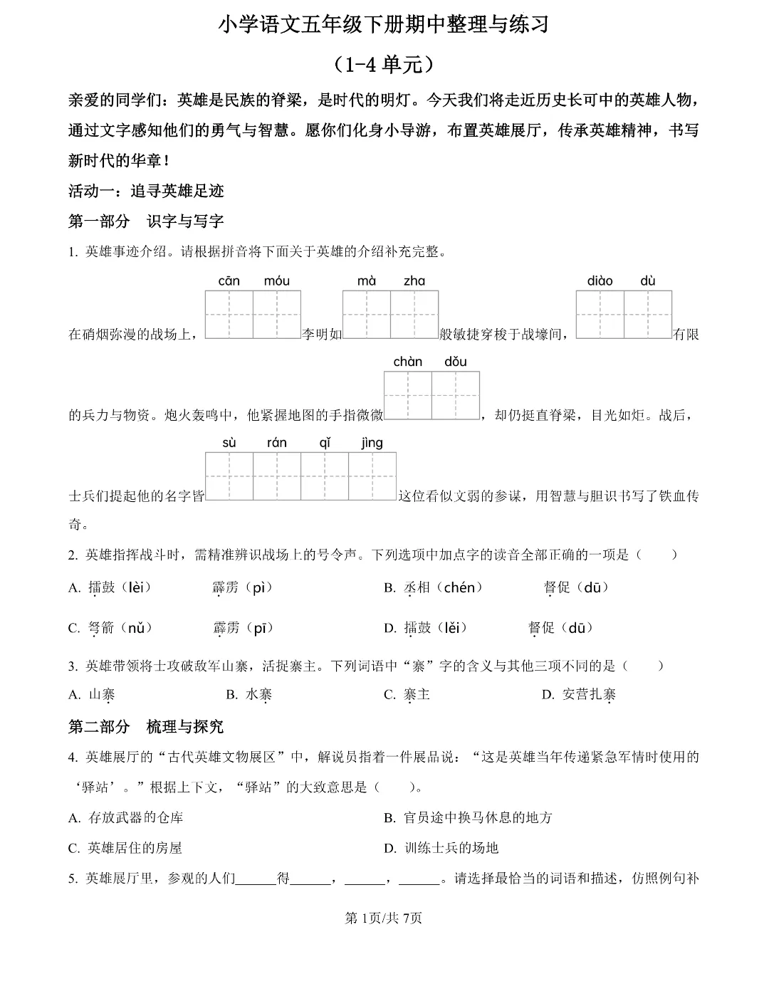 统编版语文六年级下册 第五单元试卷多套(含答案)+知识点,可下载
