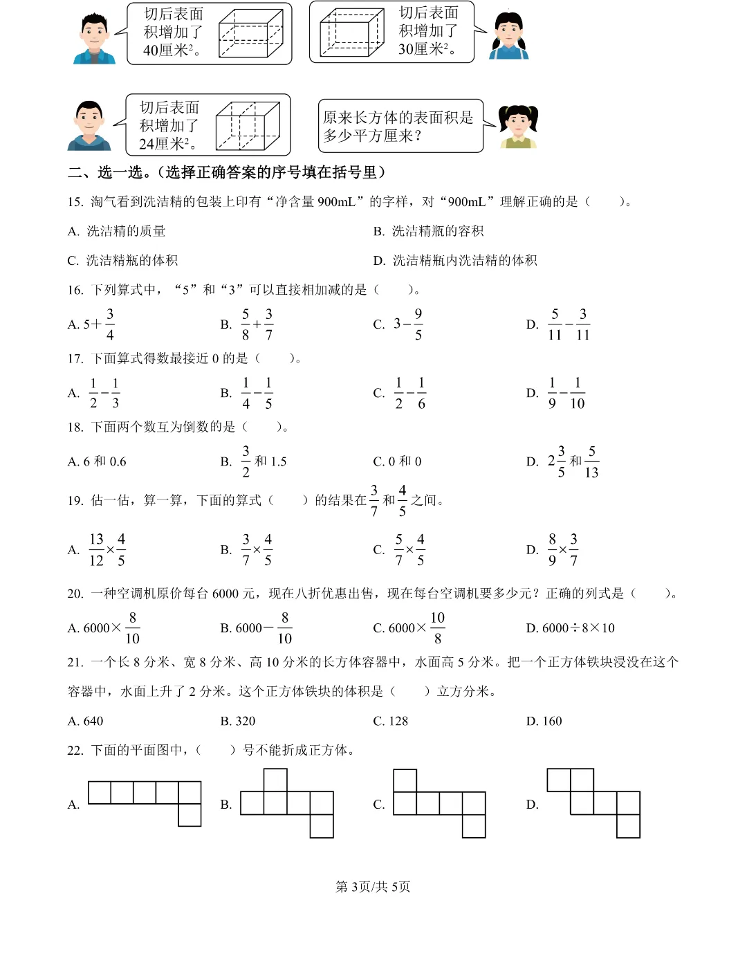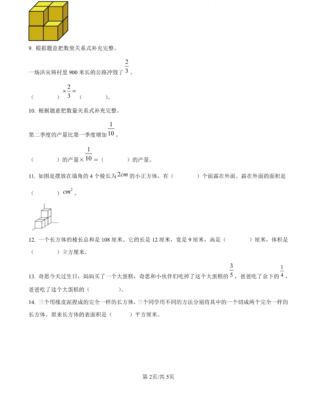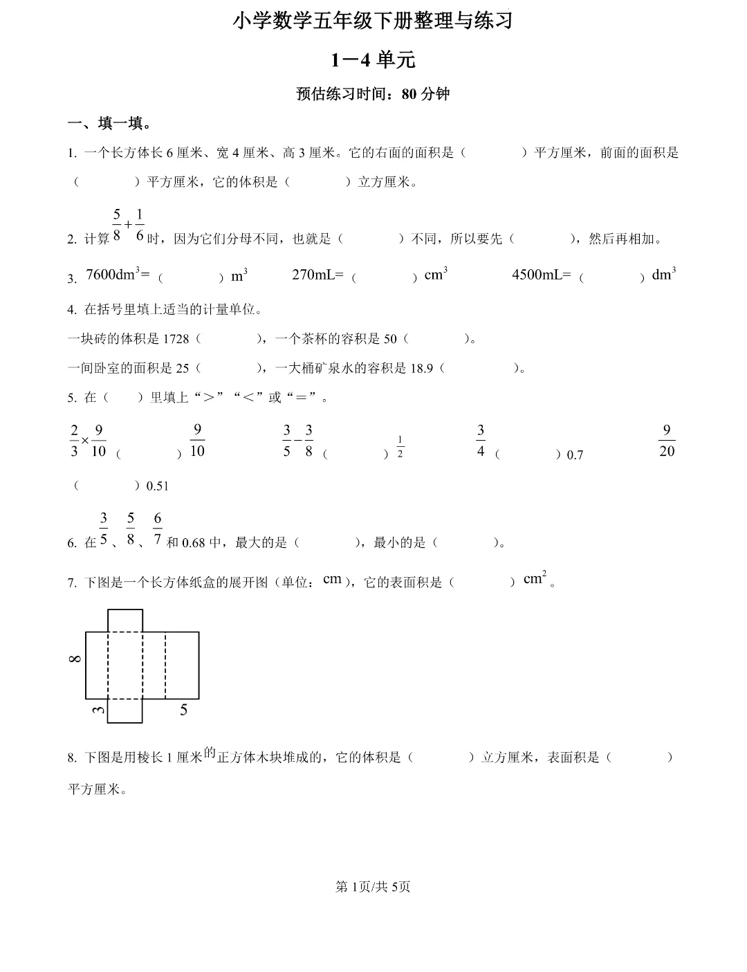 【江夏区齐心小学五下期中数学试卷】2025-2026学年