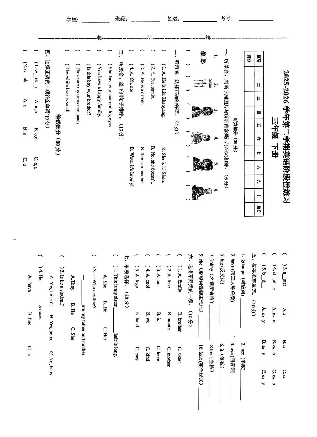 2025小学英语毕业测试卷(真题)(陇西卷)