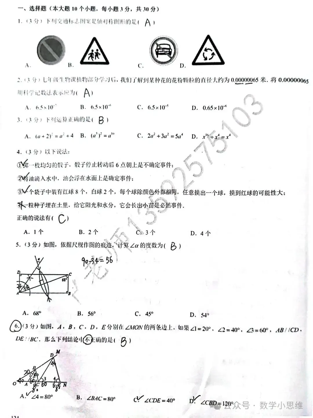7七下真题集06套省实验中学24年月考试题讲解及下载(2026版)