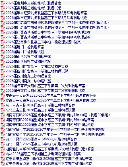 今天跟大家分享的:全国优秀高中物理试卷含答案八,获取完整免费版请下拉至文末