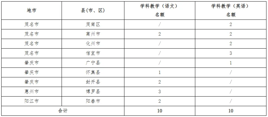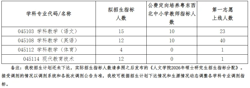 (四)佛山大学人文学院2026年硕士研究生公费定向培养粤东西北中小学教师专项计划各定向地区名额如下:
