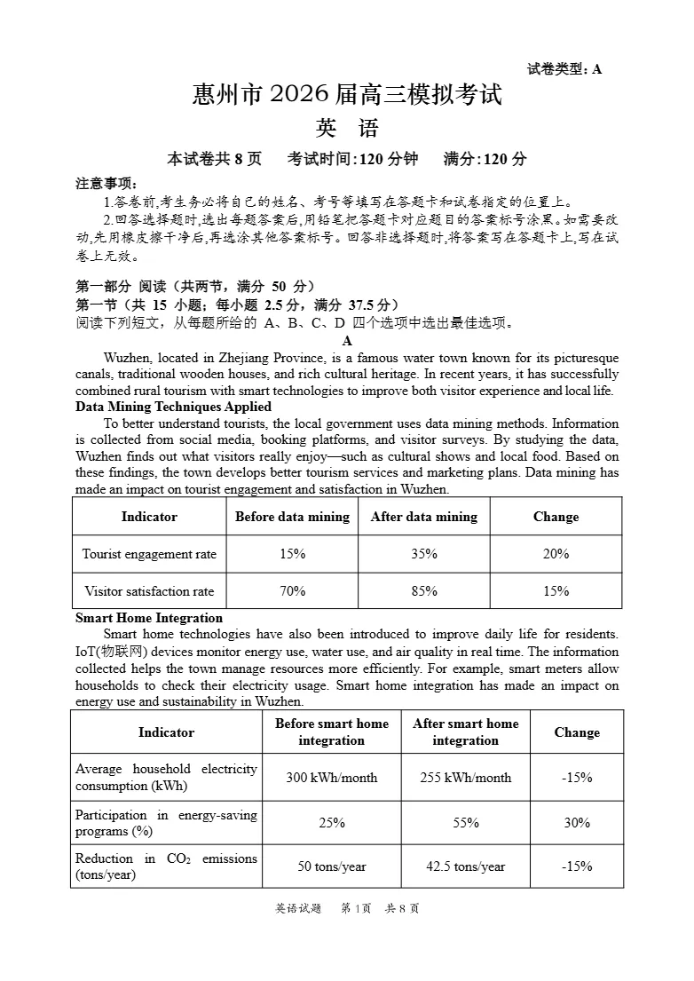 【语篇内容】本文介绍浙江乌镇运用数据挖掘优化旅游服务,提升游客参与度与满意度;借助智能家居与物联网实现节能减排,最终走出科技赋能的可持续发展之路,成为乡村发展典范。