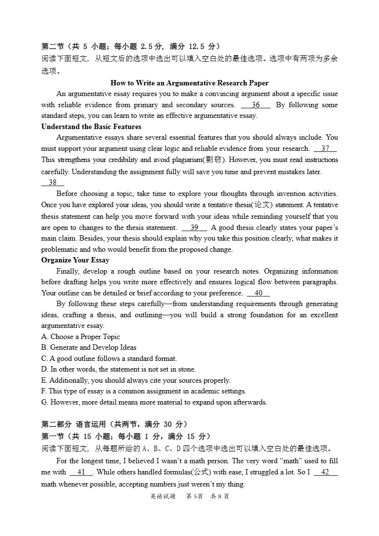 前文指出必须用清晰逻辑和可靠证据支持论点,选项E “此外,你应该始终正确引用你的来源”进一步补充写作要求,后文“这能增强你的可信度并避免剽窃” 中的“这” 指代“正确引用”,形成“证据要求—引用要求—引用好处”的递进逻辑。