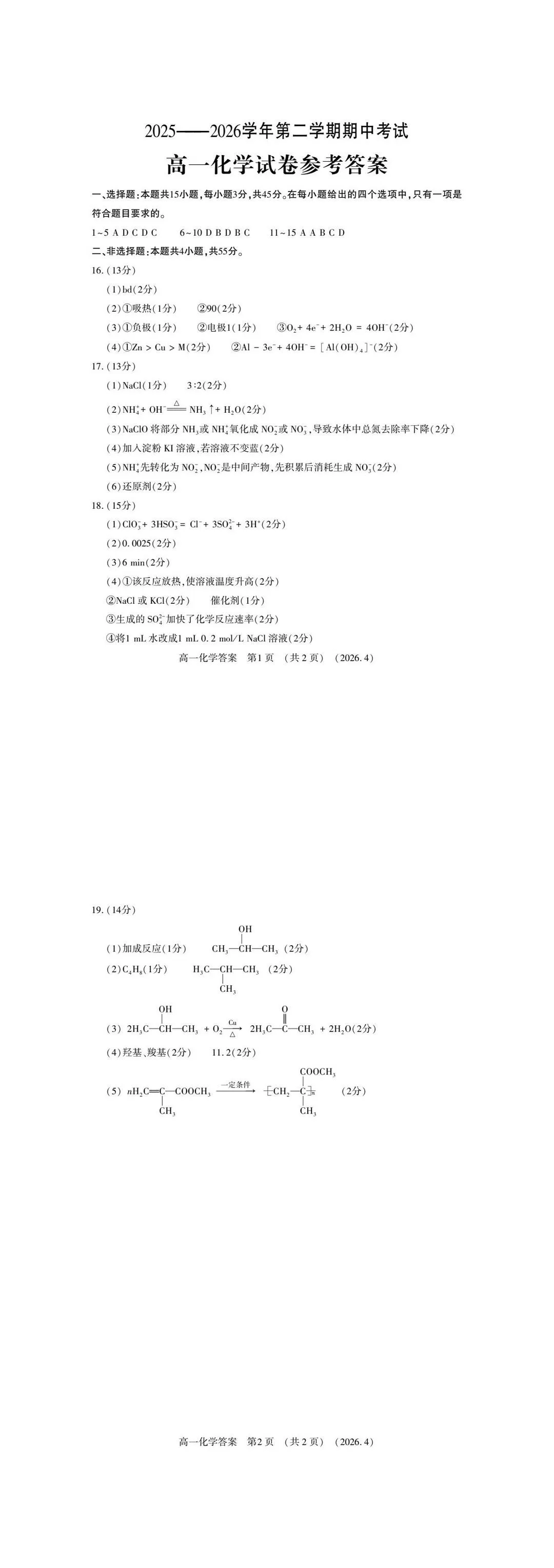 2025-2026洛阳市高一期中化学试卷及答案