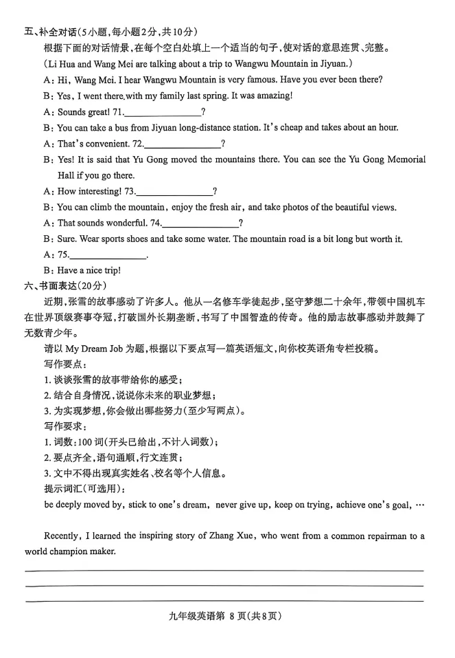 My dream job is to become a doctor. I want to help people who are suffering from illness, just like Zhang Xue,who helped Chinese motorcycles win on the world stage.