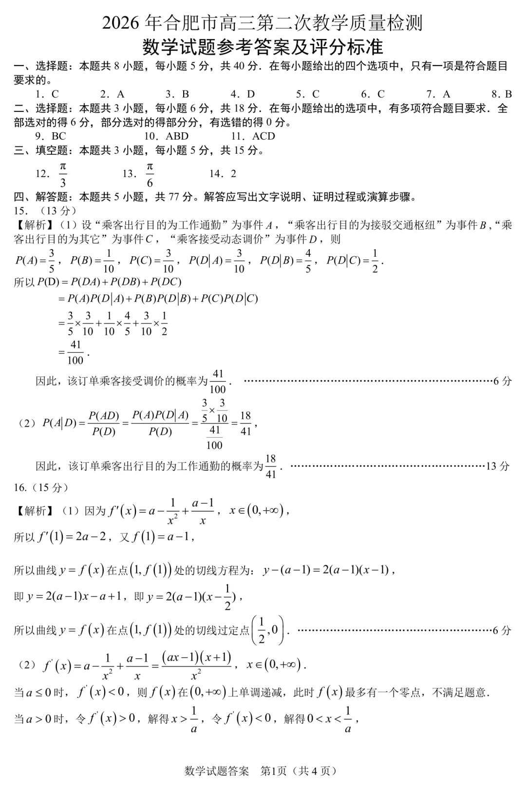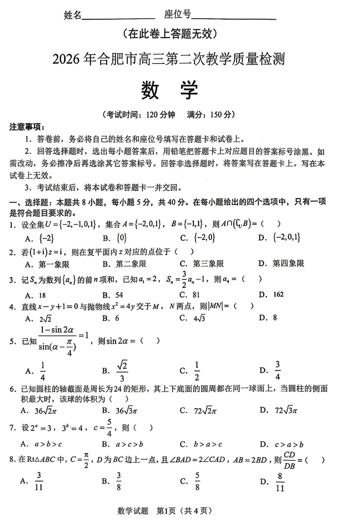 📖 合肥二模数学试卷与参考答案