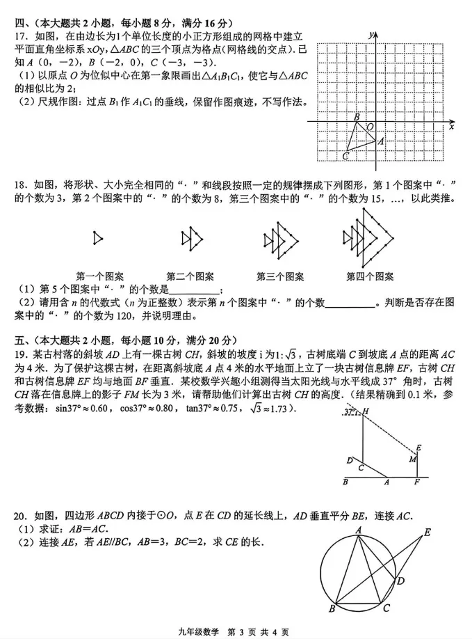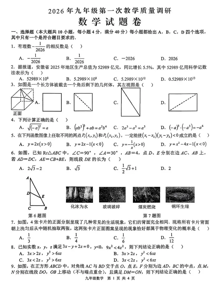 >2026肥西中考一模数学试卷+答案