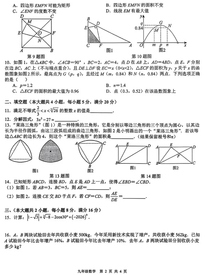 2026名校中考数学一模试卷分享