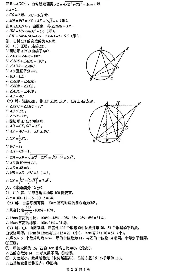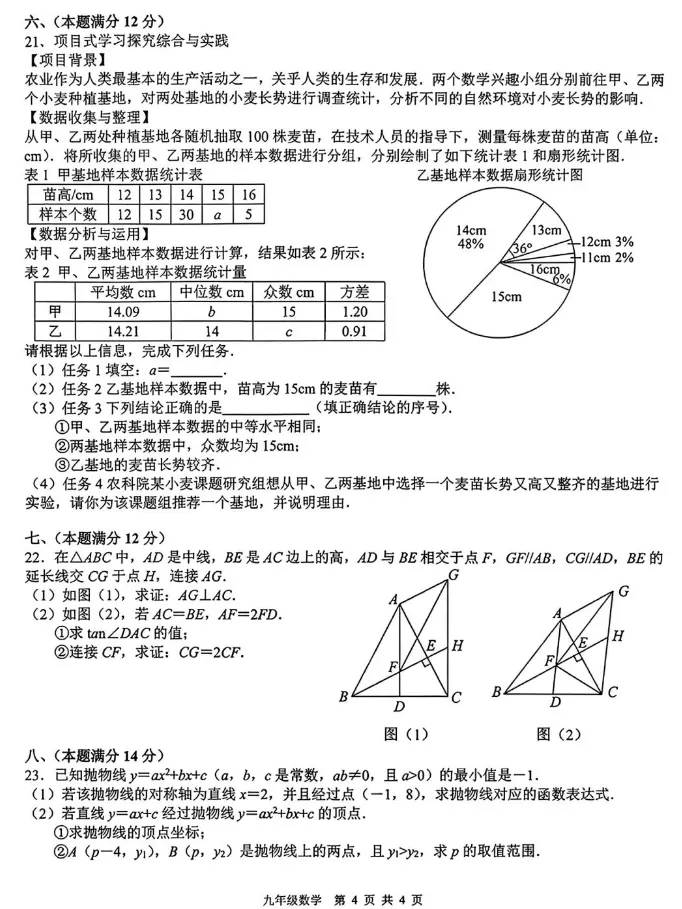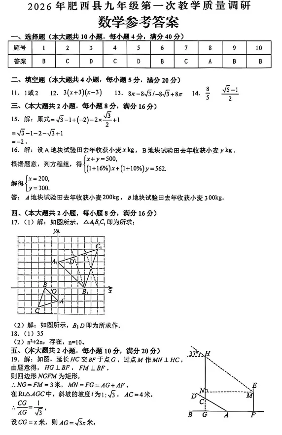 2026肥西中考一模数学试卷+答案