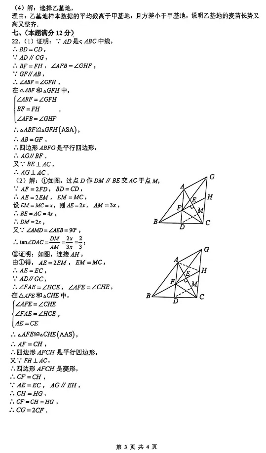 合肥二模数学试卷与参考答案