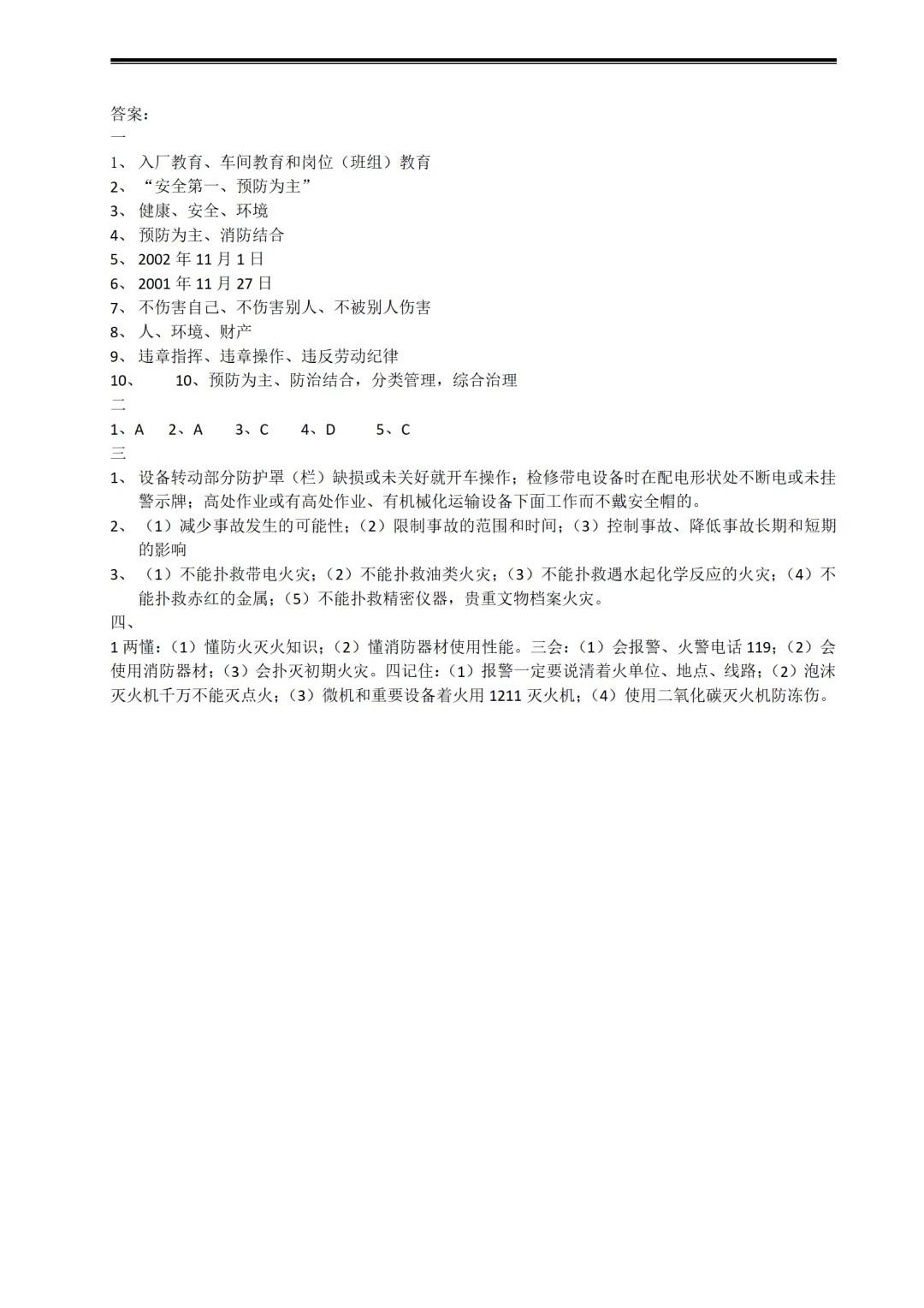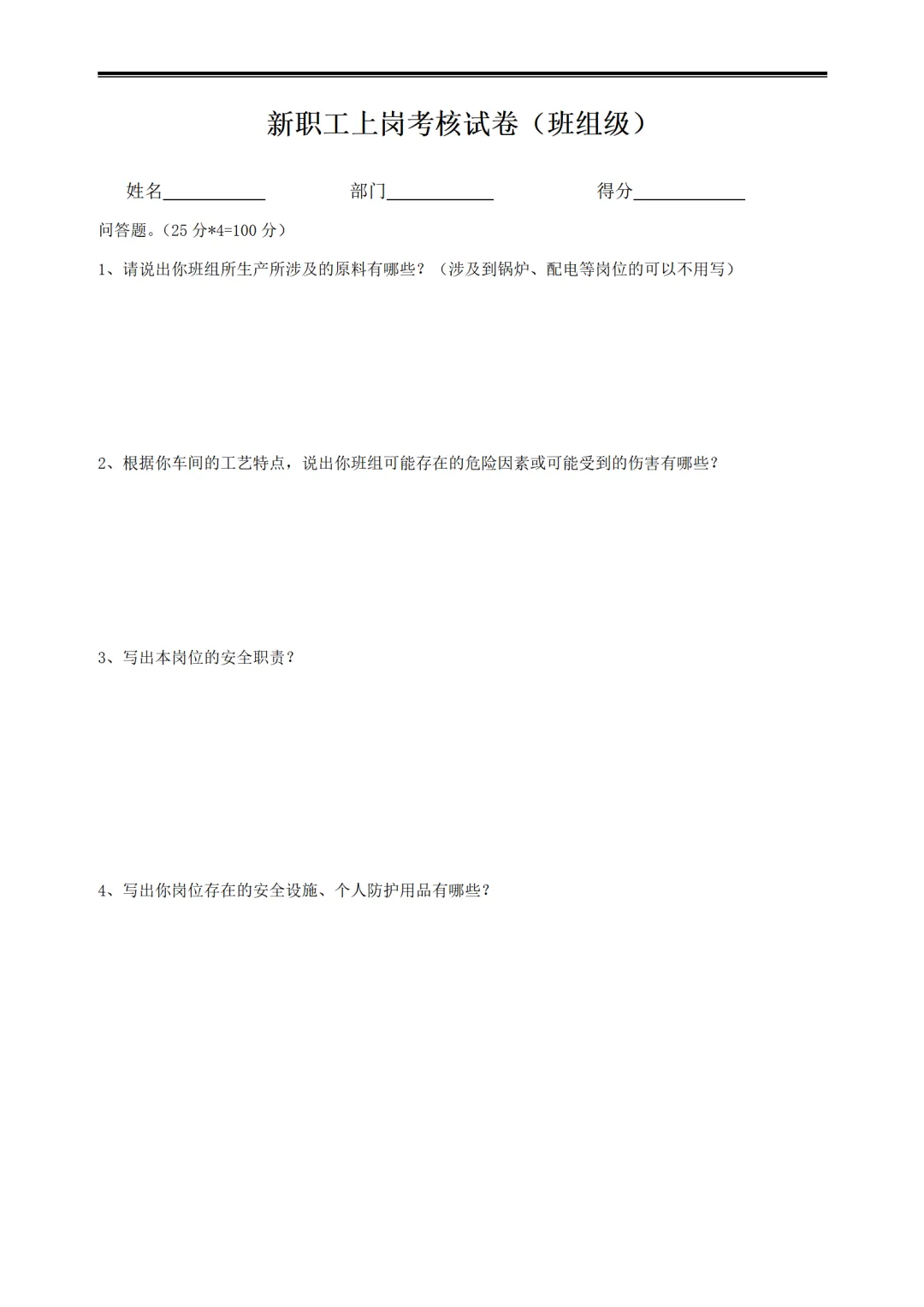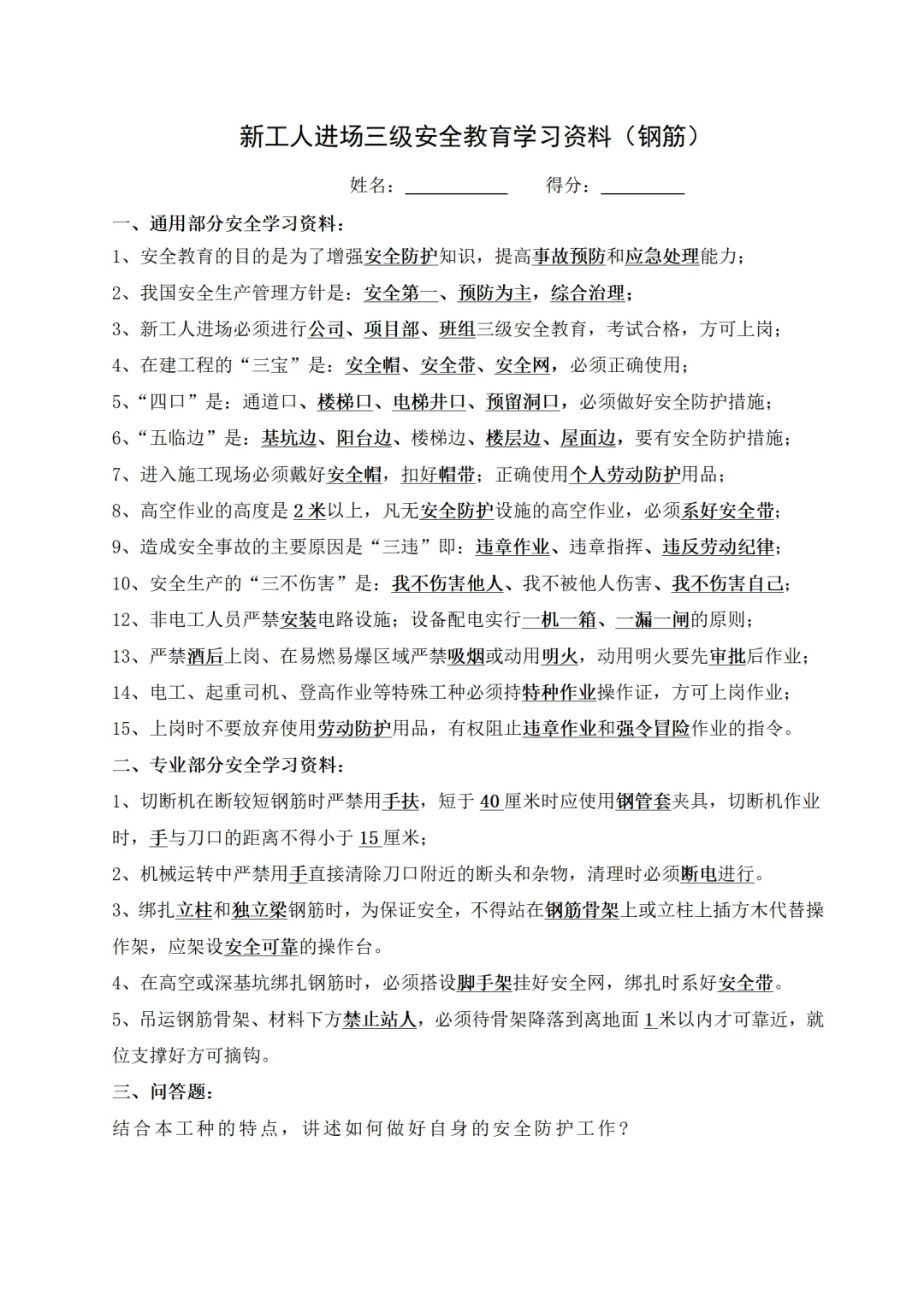 >新员工三级安全教育试卷试题-参考版+中央安全生产考核巡查企业应知应会知识手册丨精简版