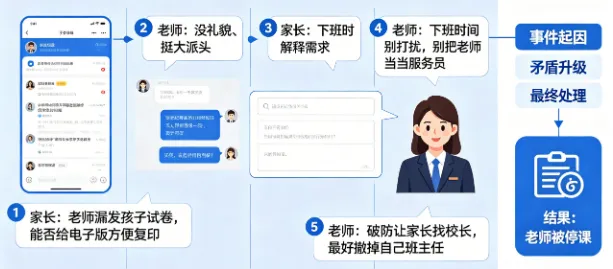 家长赶紧解释,可老师越说越气,直言“下班时间别打扰,别把老师当服务员。”