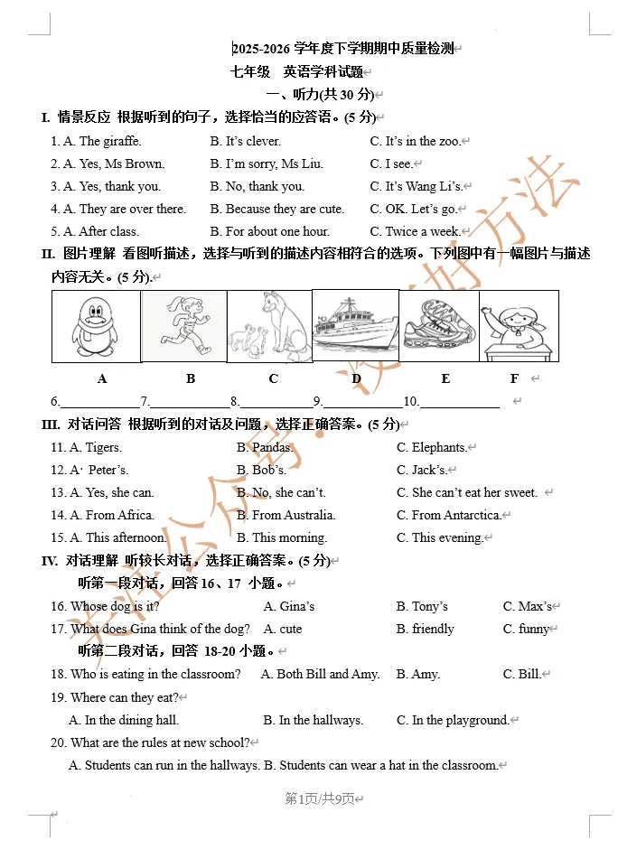 【最新试卷】2026吉林七中初一下期中英语试卷(含答案)