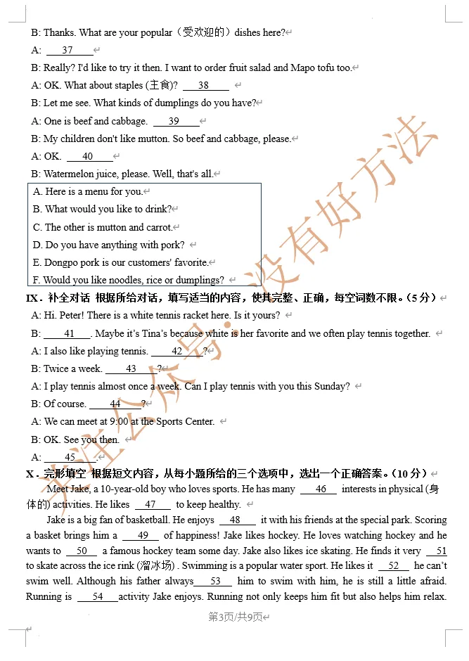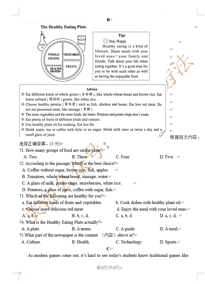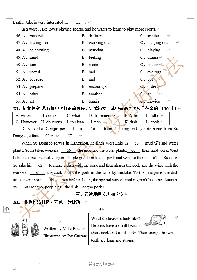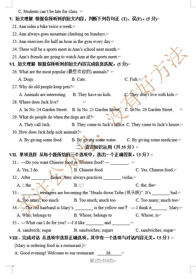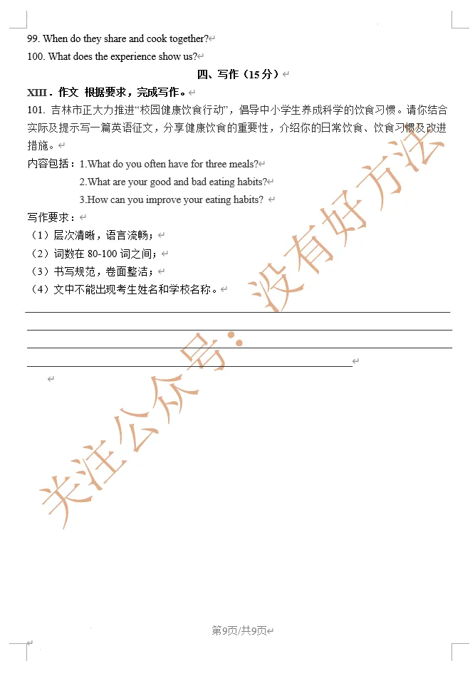 2026年济源一模英语试卷及答案