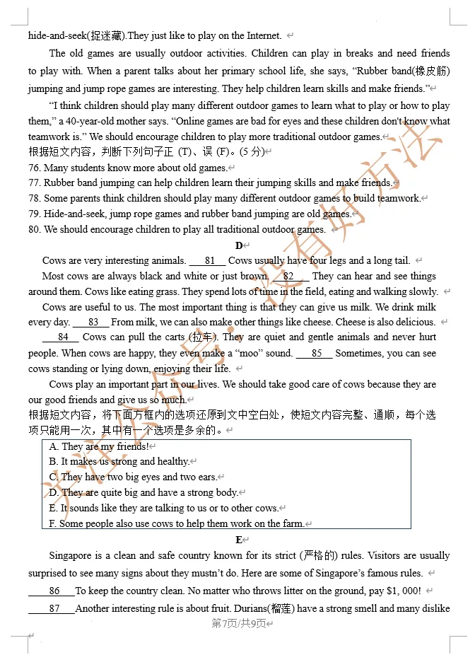 2026春七年级英语下册期中试卷