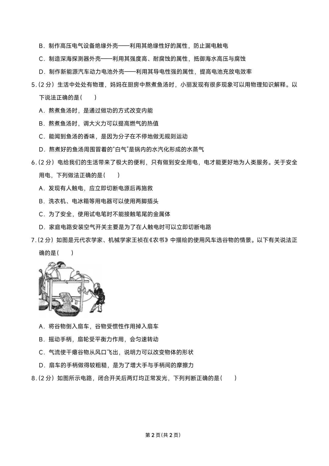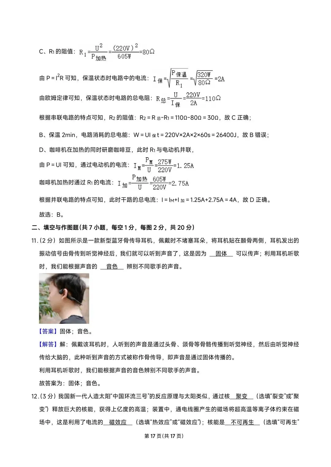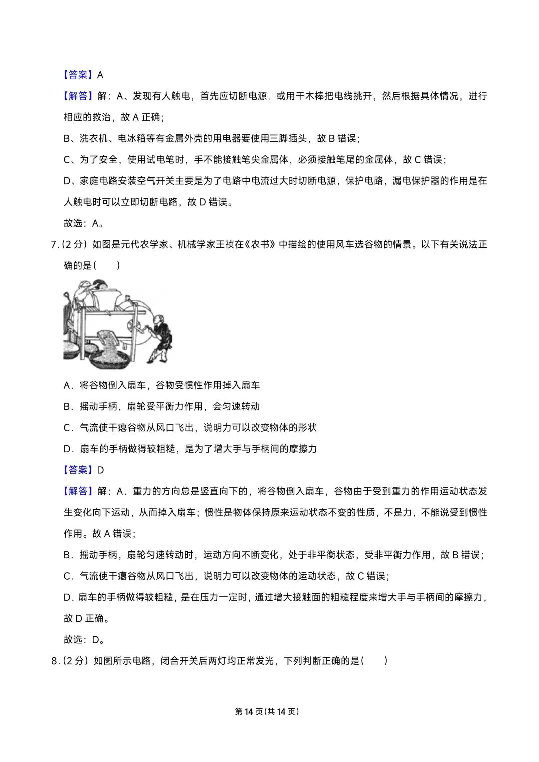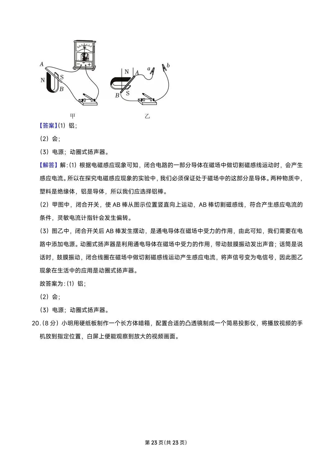 选择题前7题、填空作图题大部分内容,聚焦声、光、热、电磁、力学基础概念,比如电磁波与5G通信、物态变化、光现象辨析、安全用电、分子热运动等高频考点,全部来自课本主干知识,侧重考查学生日常知识积累与辨析能力,帮助学生排查基础漏洞。