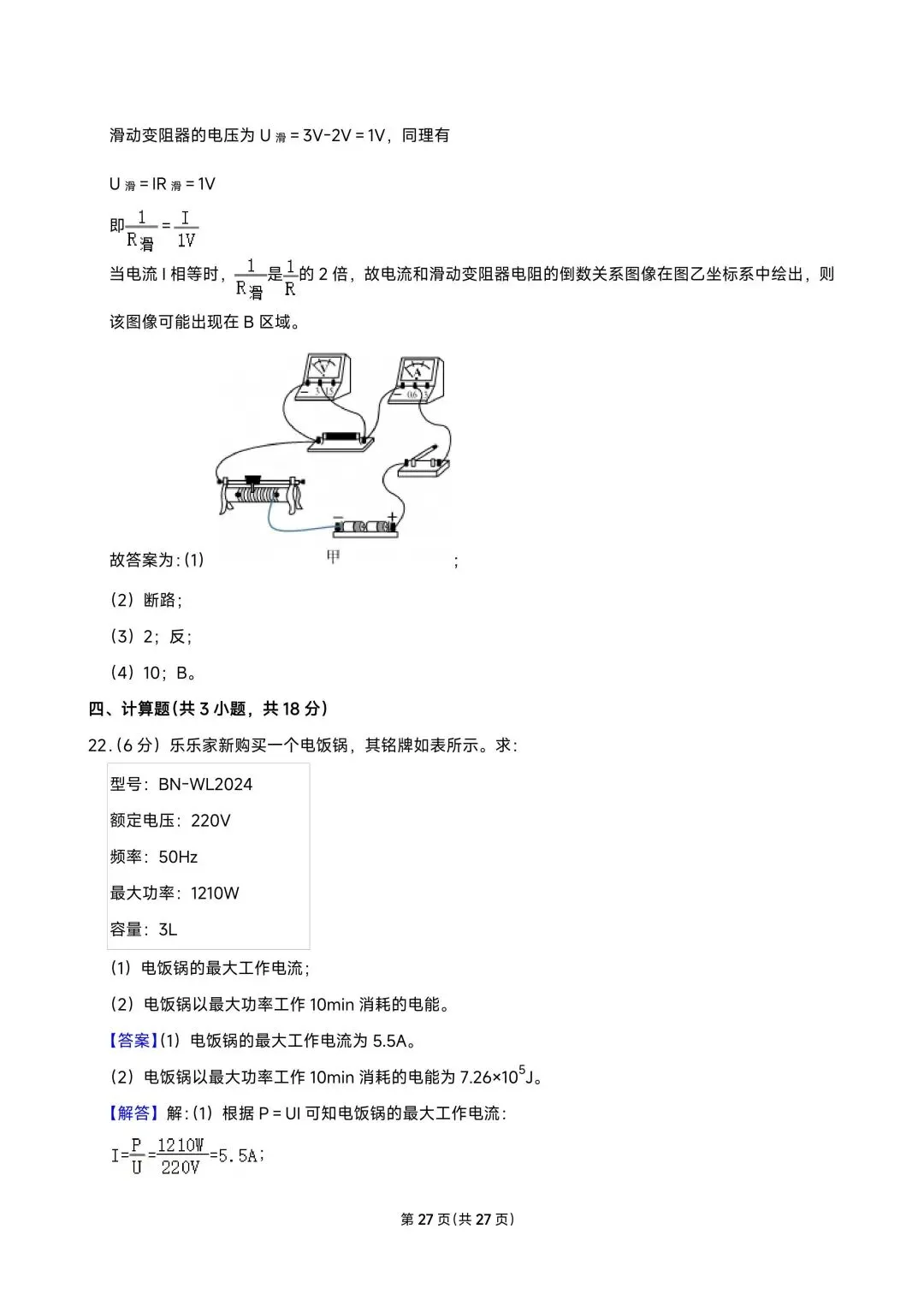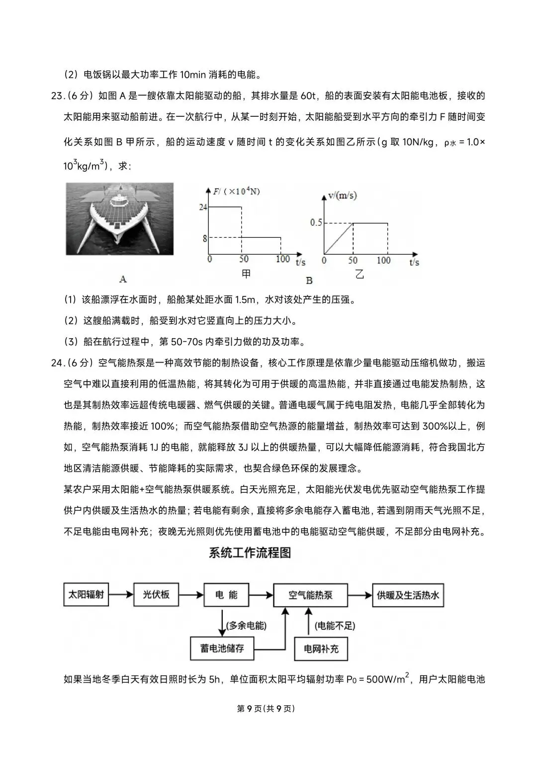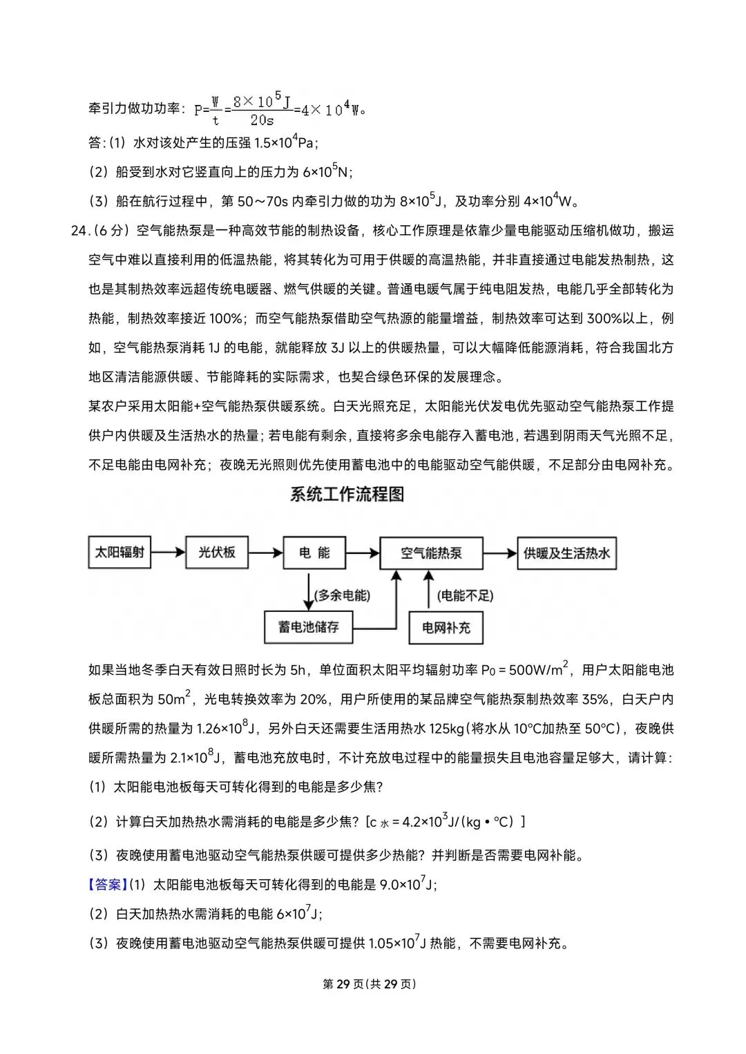 本次试卷难点集中在三大模块:一是复杂并联电路的电表分析、多开关动态电路计算;二是滑轮组机械效率综合力学计算;三是最后一题新能源热泵跨学科综合能量计算,对学生公式综合运用、多步逻辑推导、审题建模能力要求极高。