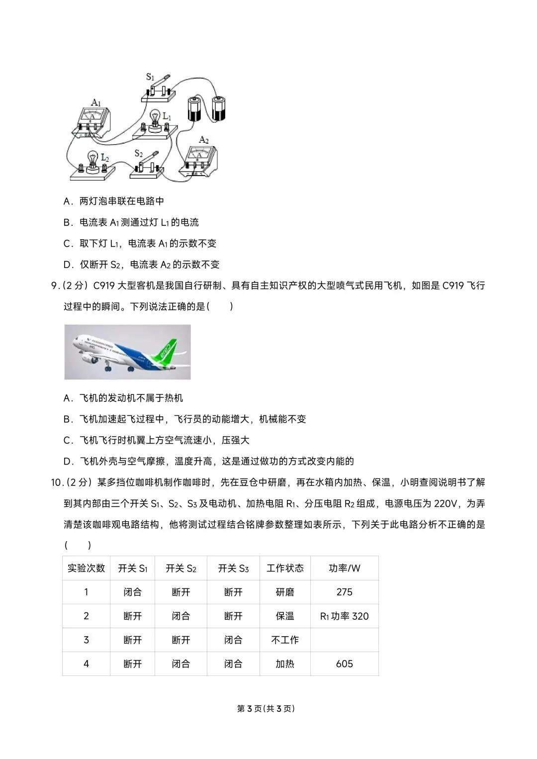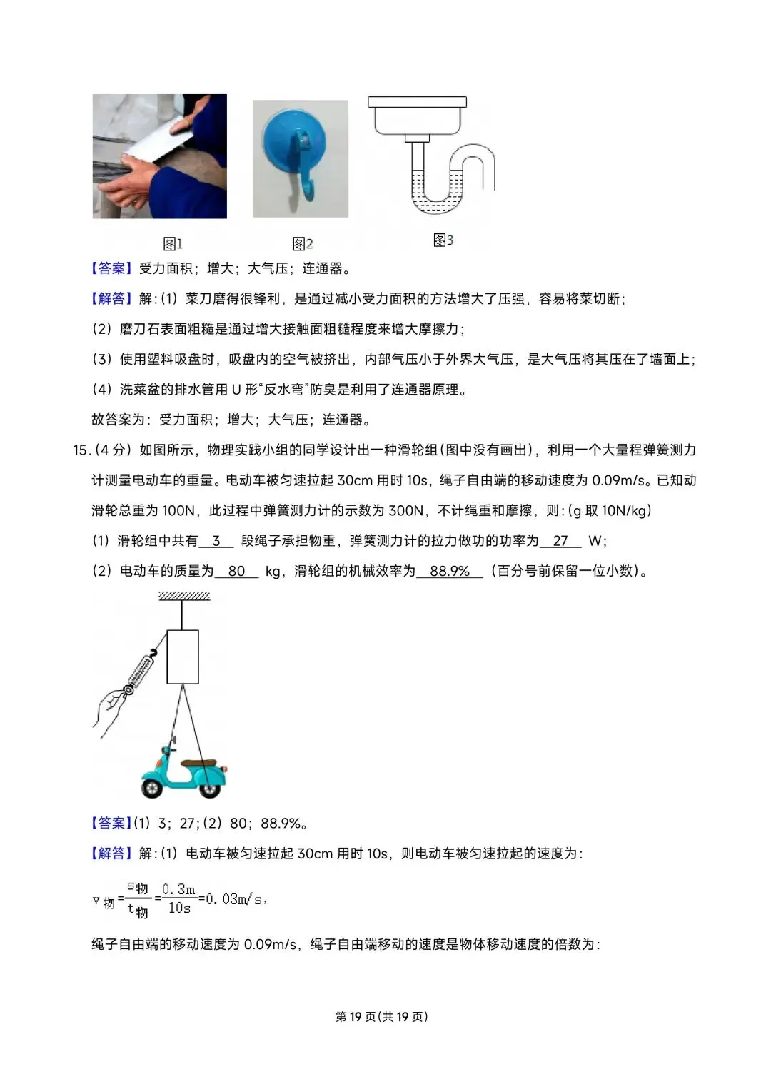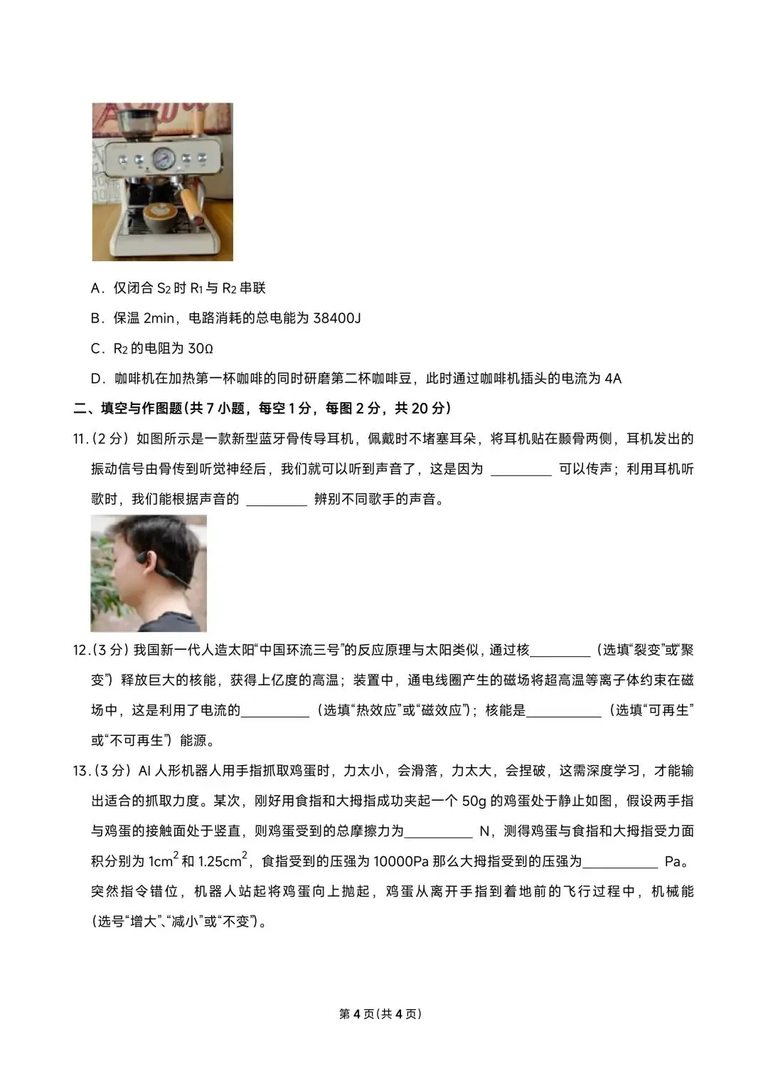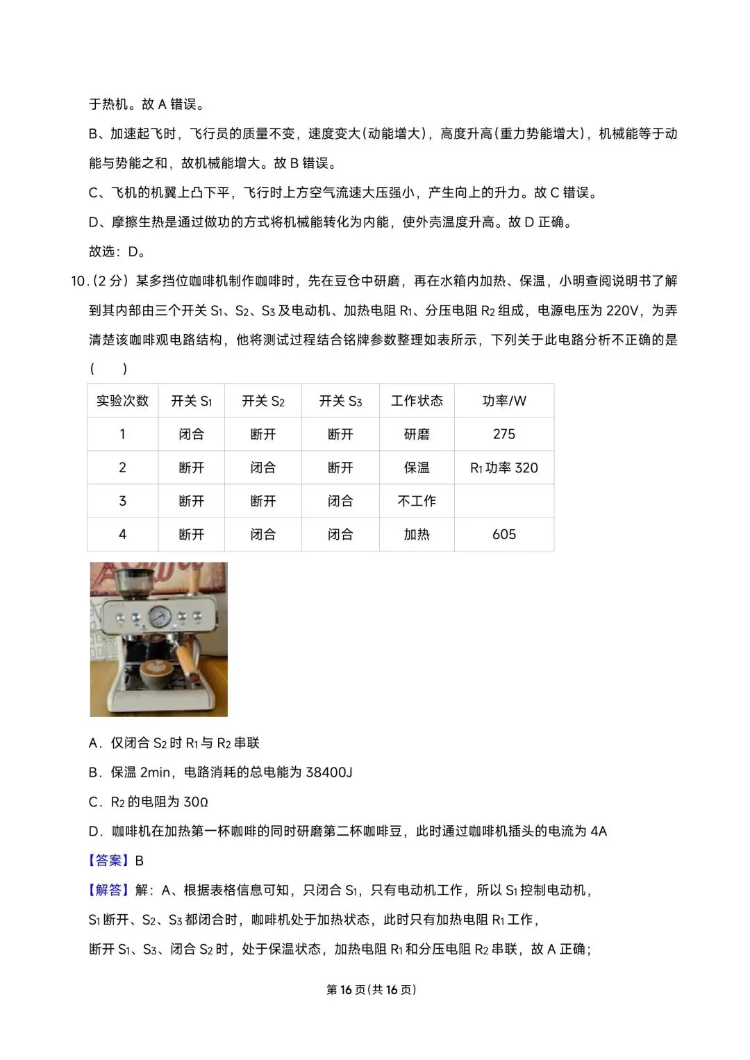 本次试卷难点集中在三大模块:一是复杂并联电路的电表分析、多开关动态电路计算;二是滑轮组机械效率综合力学计算;三是最后一题新能源热泵跨学科综合能量计算,对学生公式综合运用、多步逻辑推导、审题建模能力要求极高。