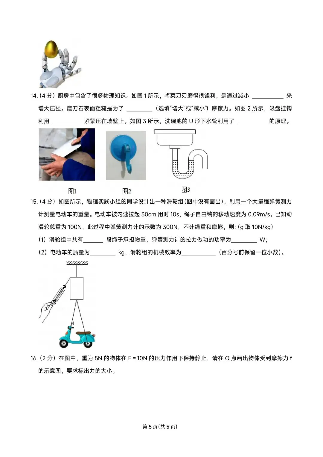 试卷整体呈现“易-中-难”的梯度排布:基础题占比约60%,保证大部分学生得分;中档实验与电路、滑轮组计算占比25%,考查逻辑推导;压轴综合计算题占15%,拉开尖子生差距,完美适配中考选拔定位。