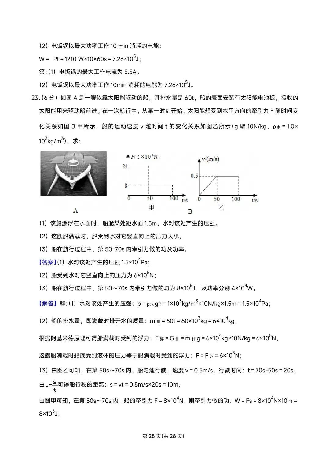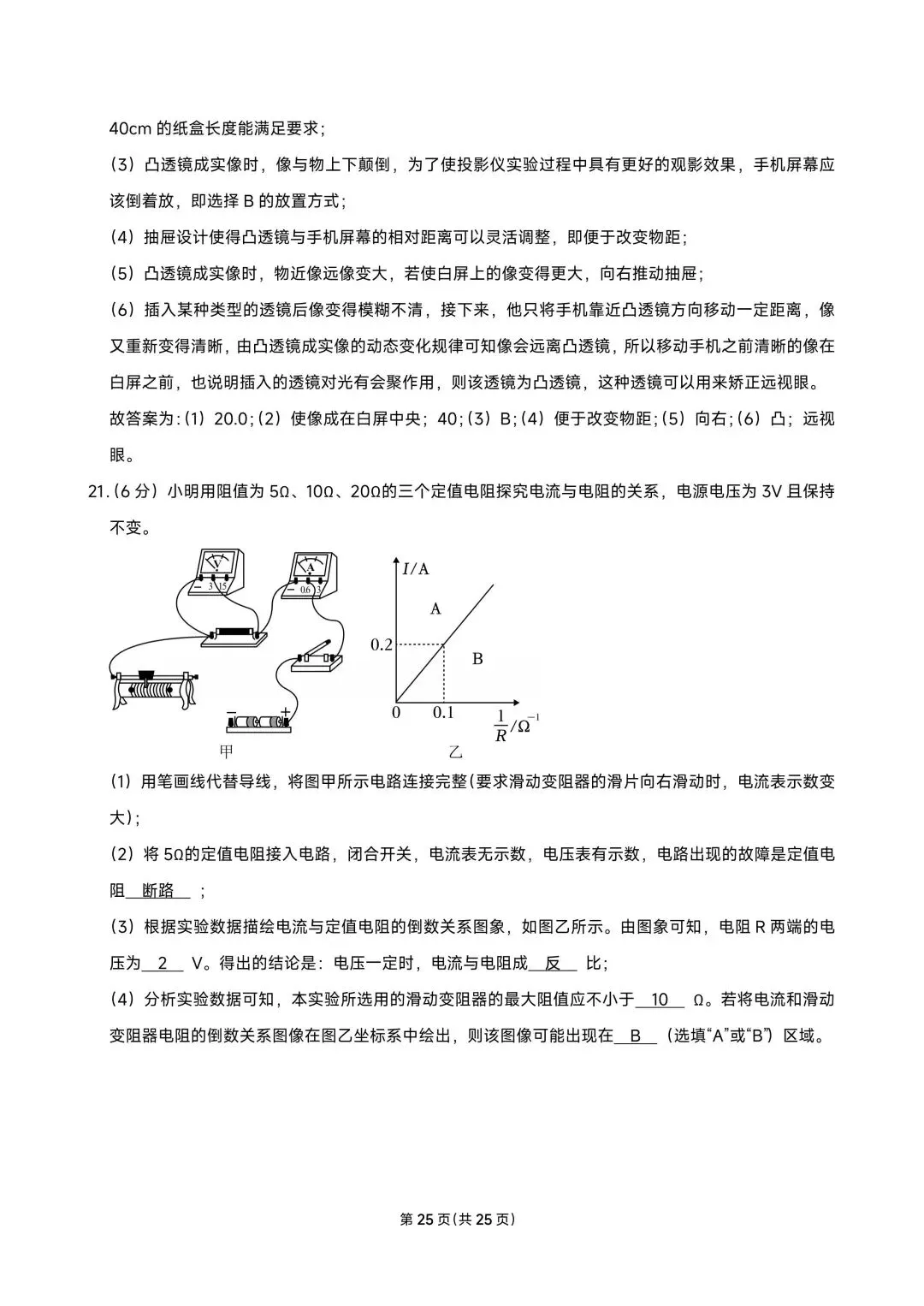 对于基础薄弱学生,优先吃透选择1-7题、填空基础题,巩固课本定义与公式,保证基础分值全部拿满;中等学生重点攻克动态电路、滑轮组、光学实验中档题型,规范解题步骤,减少计算失误;尖子生主攻最后两道压轴综合计算题,强化能量转化、效率、多过程受力分析的综合解题能力。
