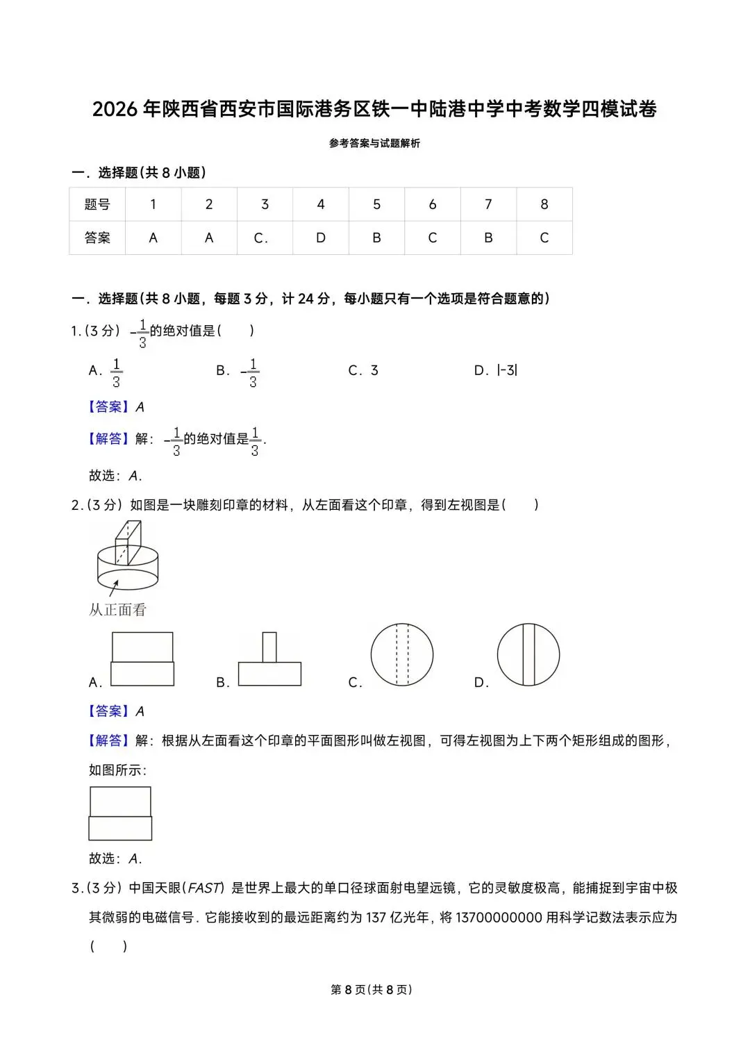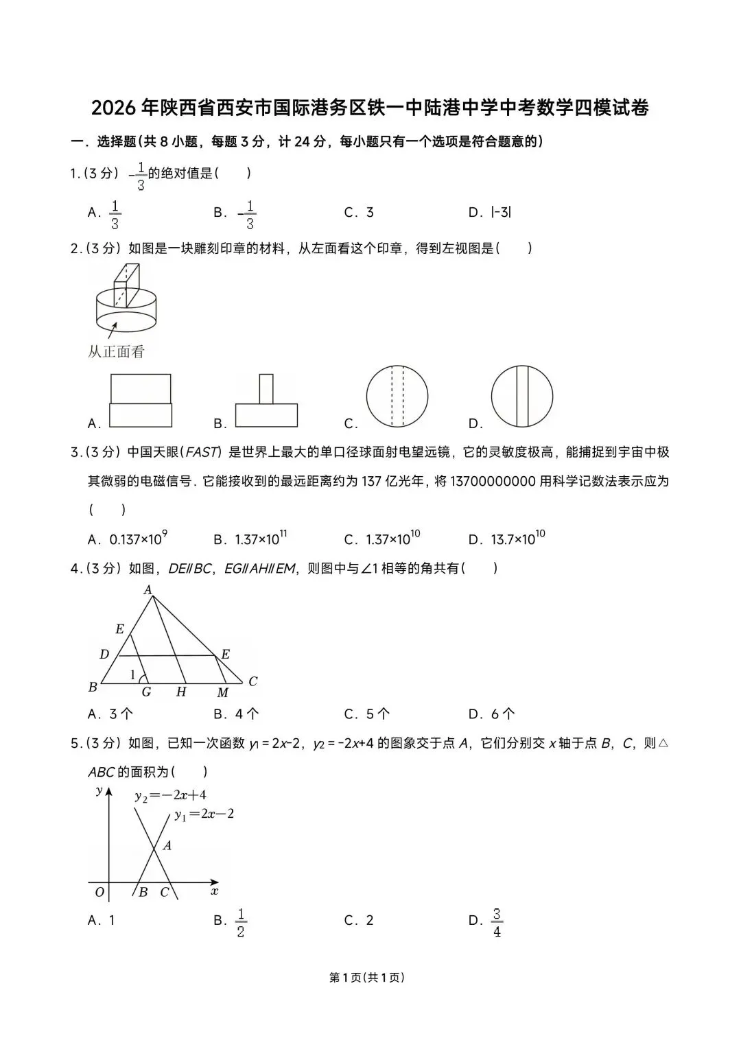本次2026年西安市国际港务区铁一中陆港中学中考数学四模试卷,严格贴合陕西中考数学命题框架,满分120分,题型、分值、考点排布完全对标陕西中考真题,既完成了中考全知识点的收官模拟,也精准排查学生知识漏洞,兼具检测性与中考导向性。