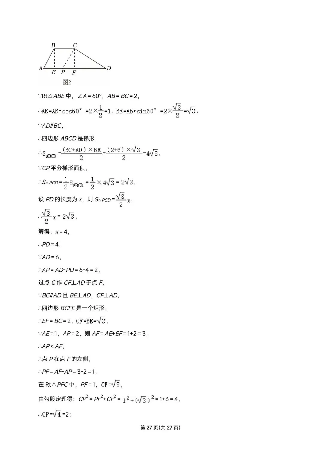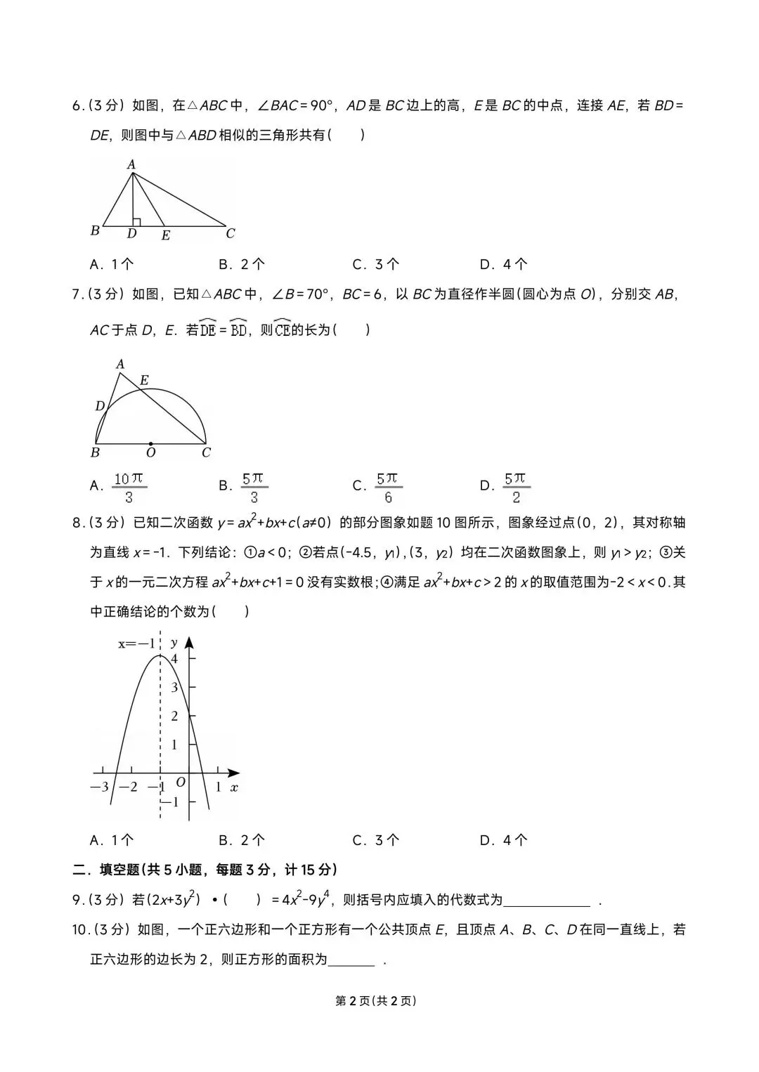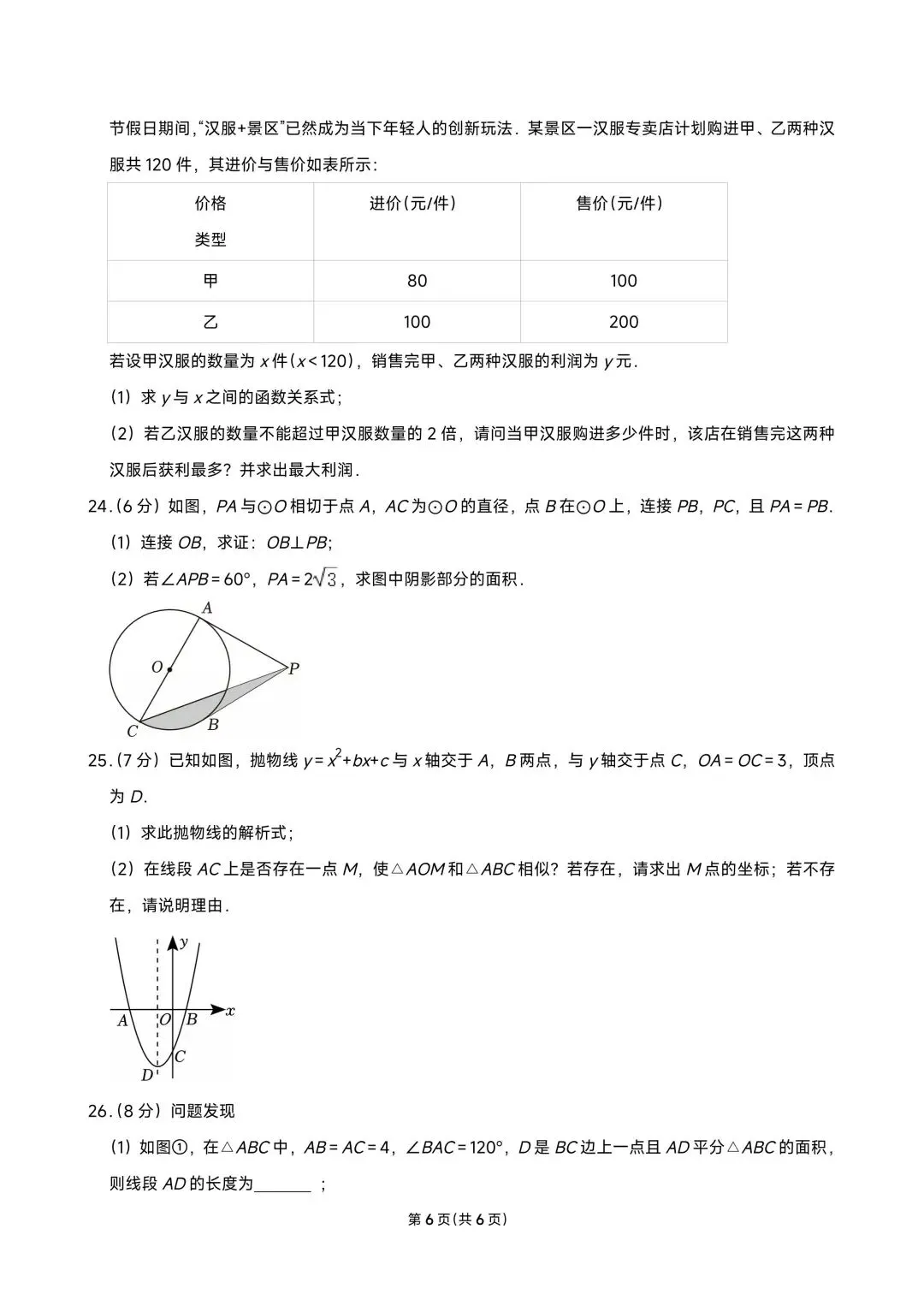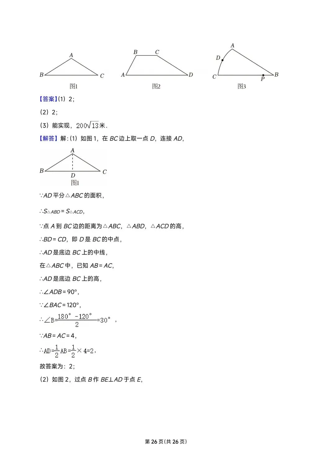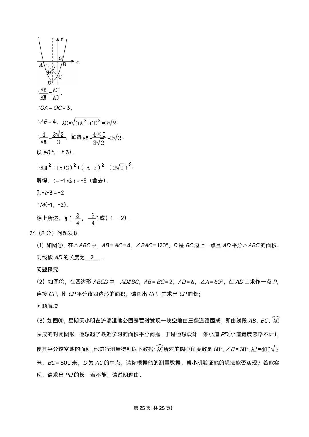 3. 压轴区分模块(选择8、解答25-26):二次函数图像与性质多结论辨析、抛物线相似存在性、面积平分几何探究,是整张试卷的难点。第26题面积平分新定义探究,结合圆、解三角形、几何最值,高度贴合陕西中考最后一道几何压轴的创新出题风格,对学生综合逻辑、辅助线构造能力要求极高。