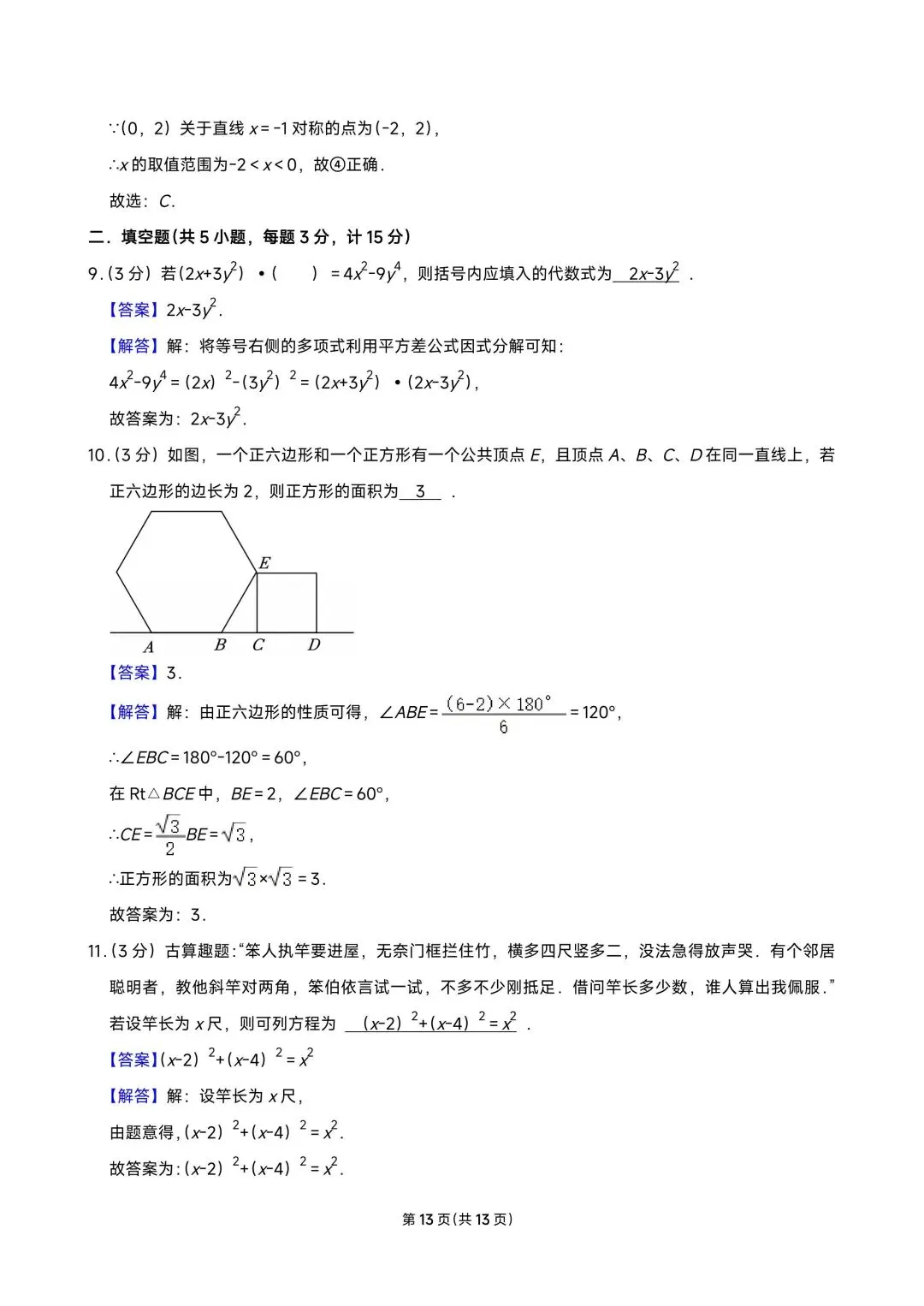 2026中考数学西安某高新一中中考数学四模试卷(含答案及解析)