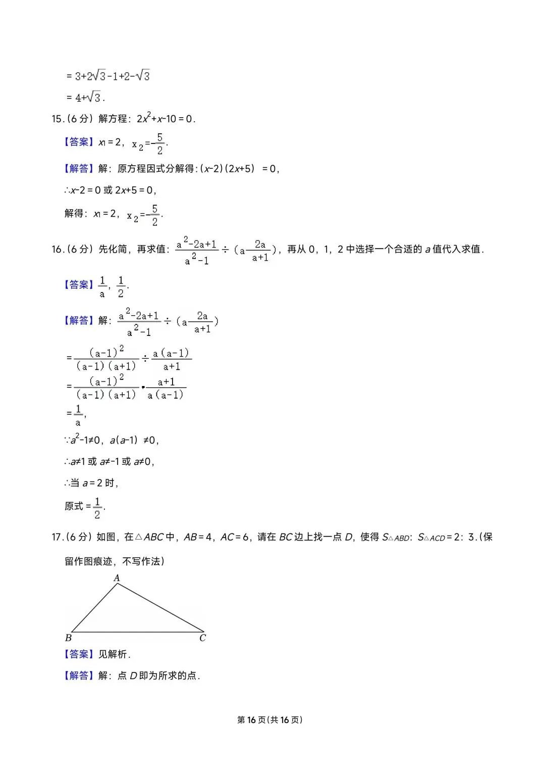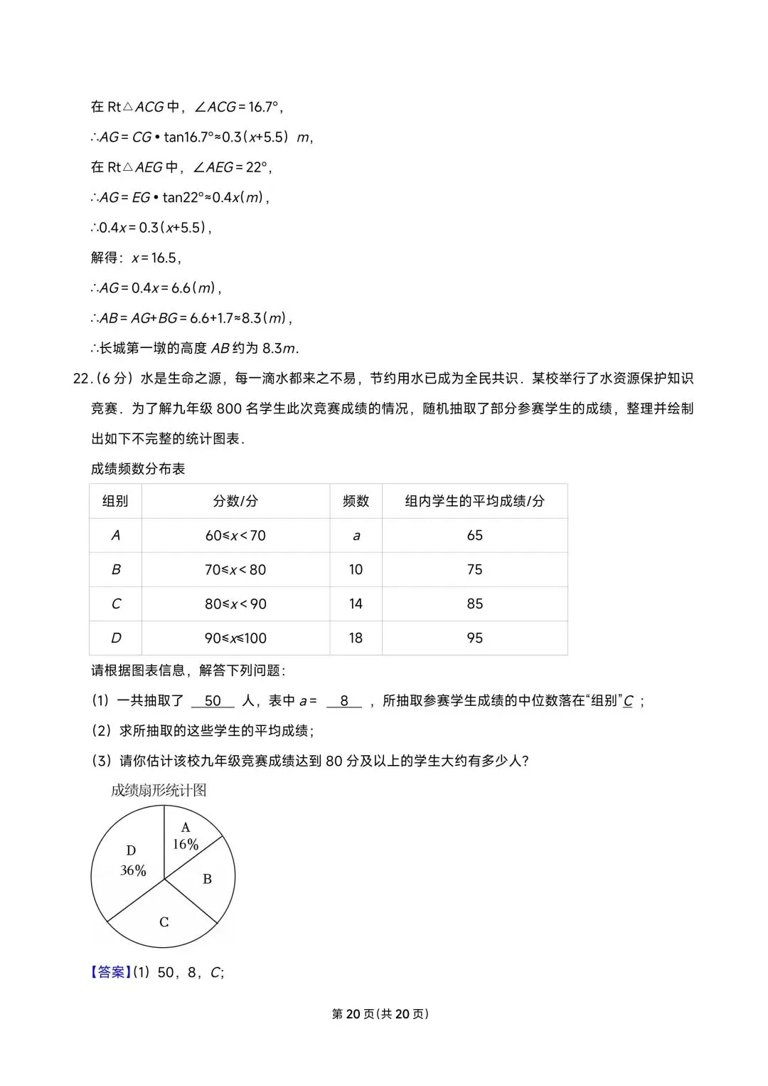 1. 基础模块(选择1-5、填空9-12、解答14-22):覆盖有理数绝对值、三视图、科学记数法、平行线性质、实数运算、一元二次方程、分式化简、尺规作图、平行四边形证明、不等式应用、概率统计、解直角三角形等高频基础考点。该板块占分超70分,侧重