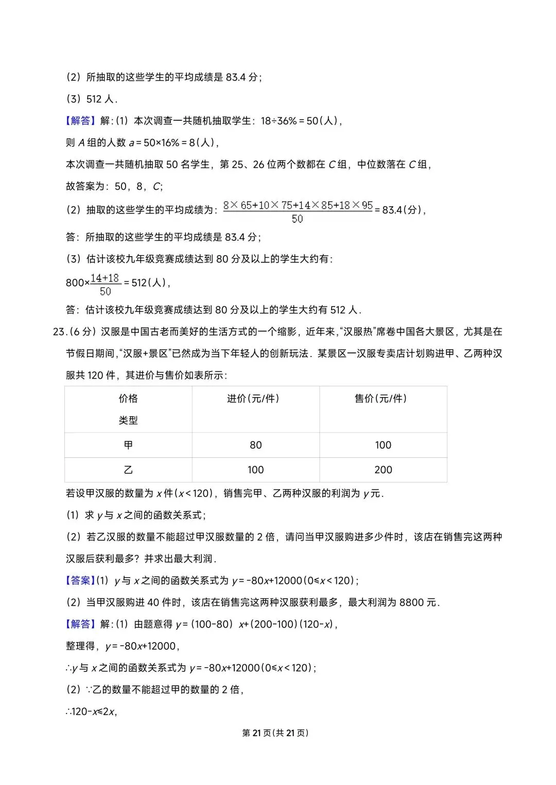 试卷整体难度呈由易到难、分层递进分布,基础题、中档题、压轴题占比约为7:2:1,符合陕西中考70%基础得分、20%能力拔高、10%区分选拔的命题规律。选择题8道24分、填空题5道15分、解答题13道81分,题量和中考完全匹配。整体难度略高于三模,侧重考查学生几何模型迁移、函数综合、实际应用的核心解题能力,区分度设计合理,能有效分层不同分数段考生水平。