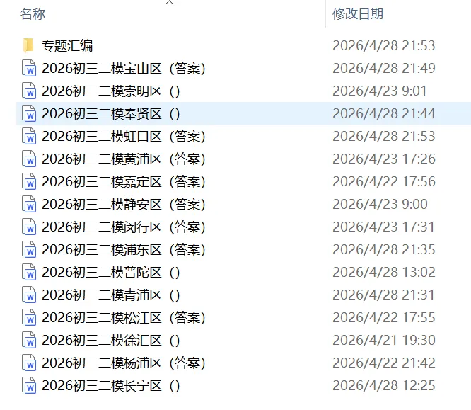 初三二模卷开始预定啦。30元全16区(含专题汇编)。