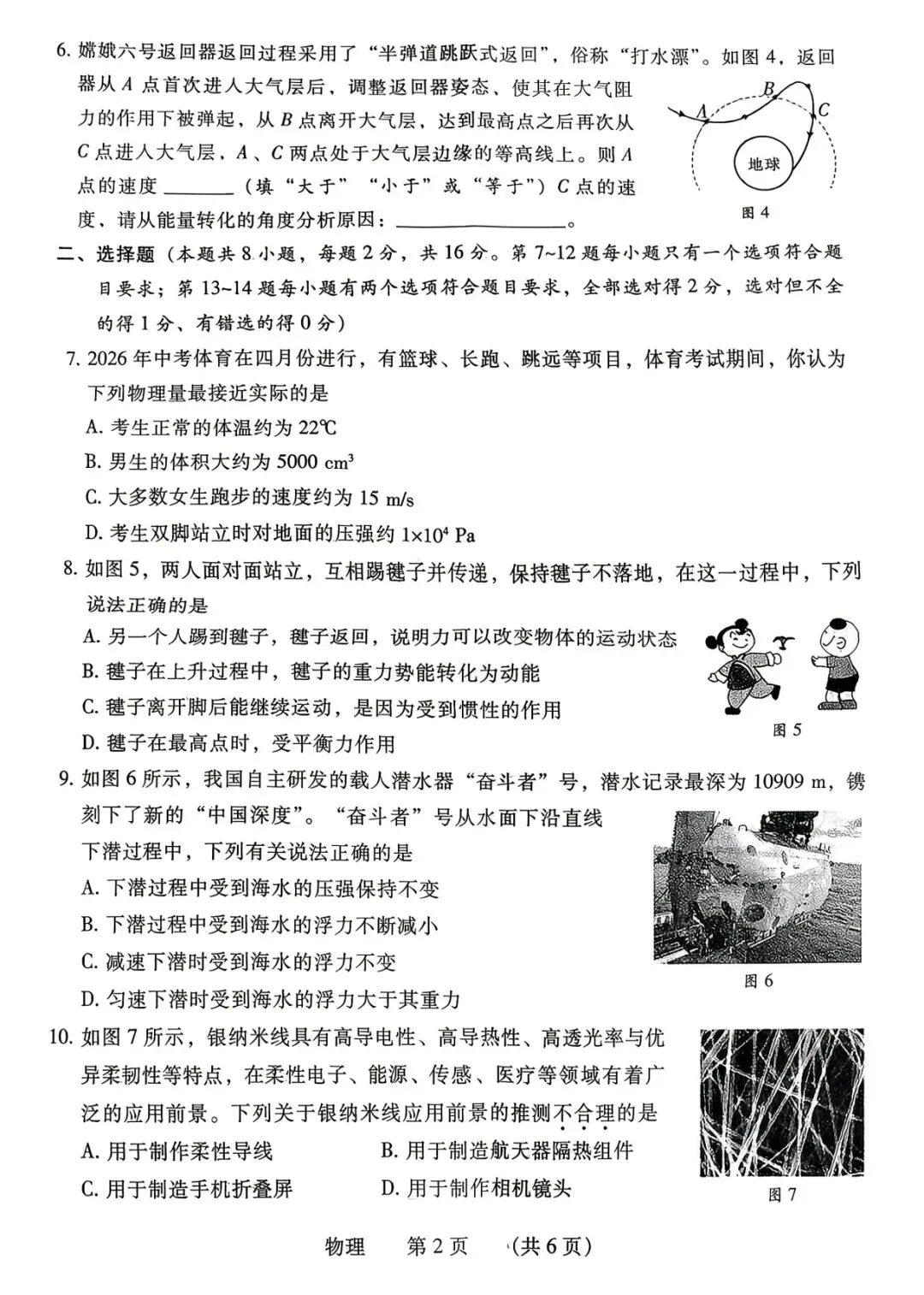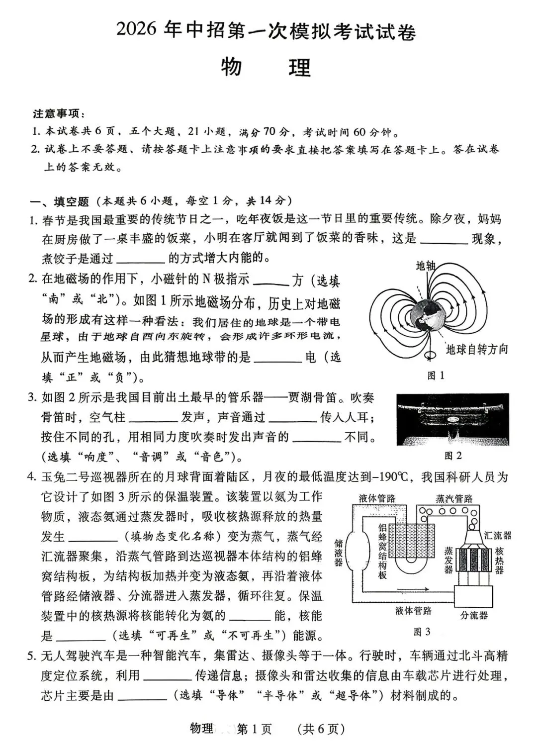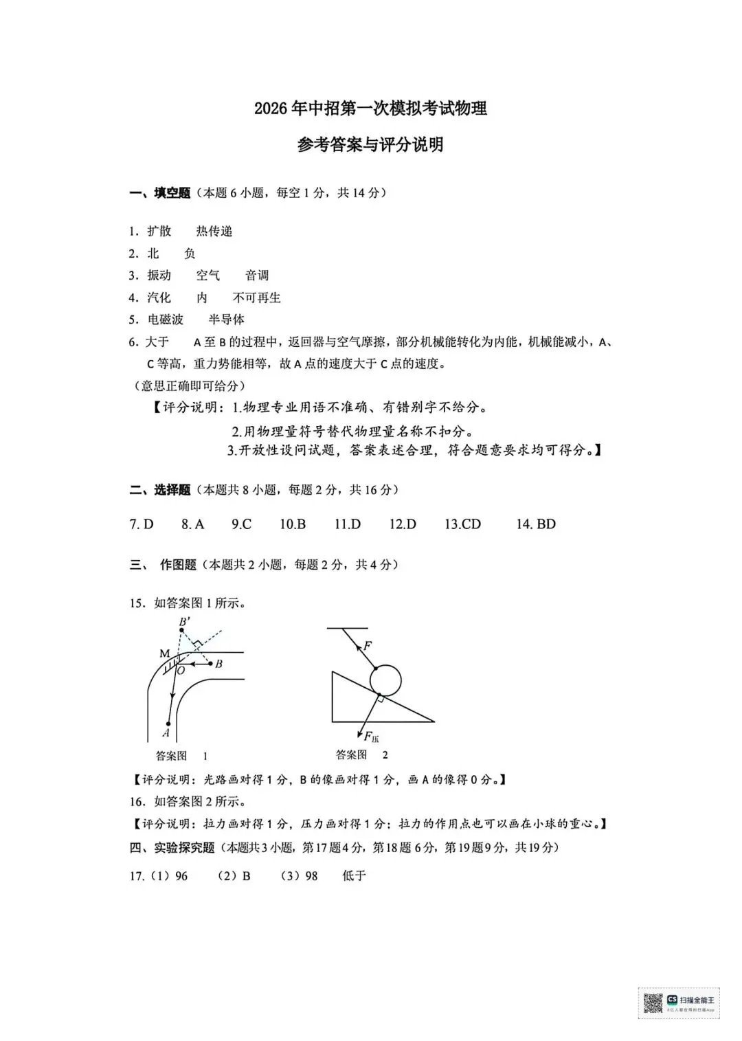2026铁一滨河中考物理四模试卷(含答案及解析)