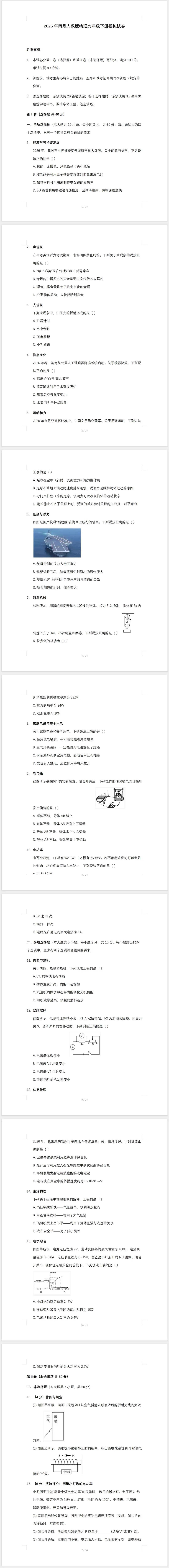 2026年四月人教版物理九年级下册模拟试卷(含答案)