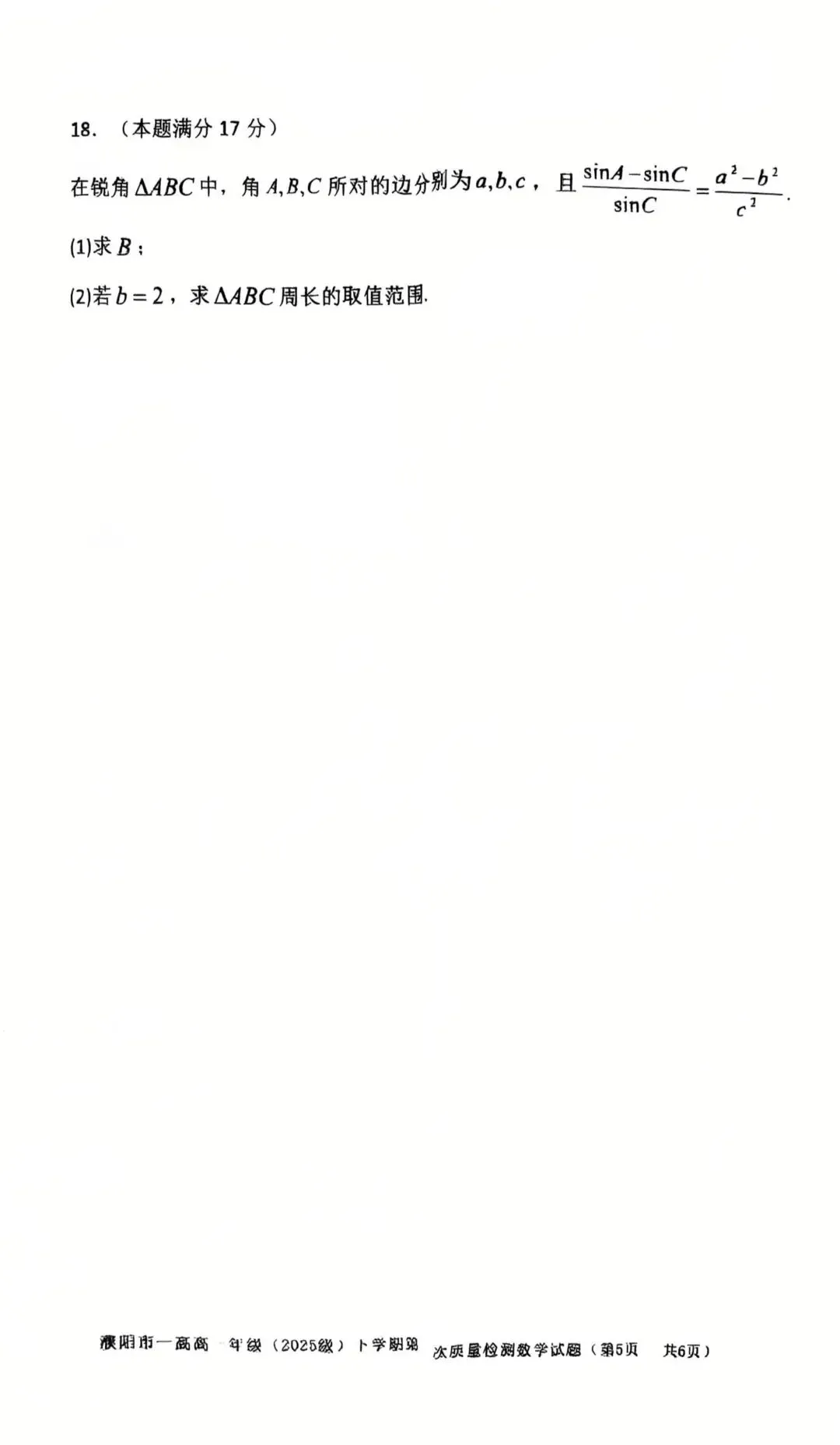 >濮阳市一高高一下第二次数学考试试卷及答案