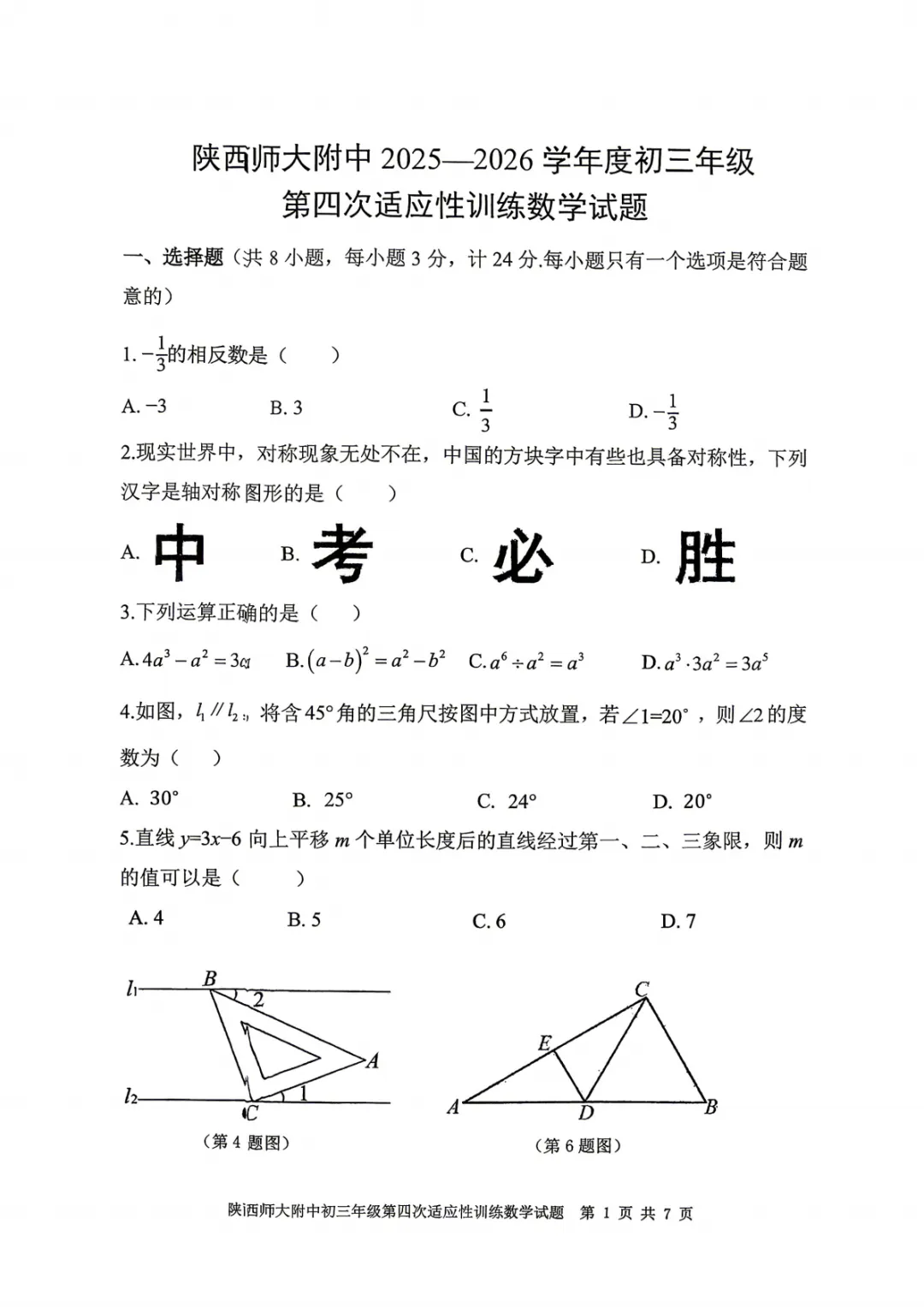 >【2026年师大附中四模数学试卷】