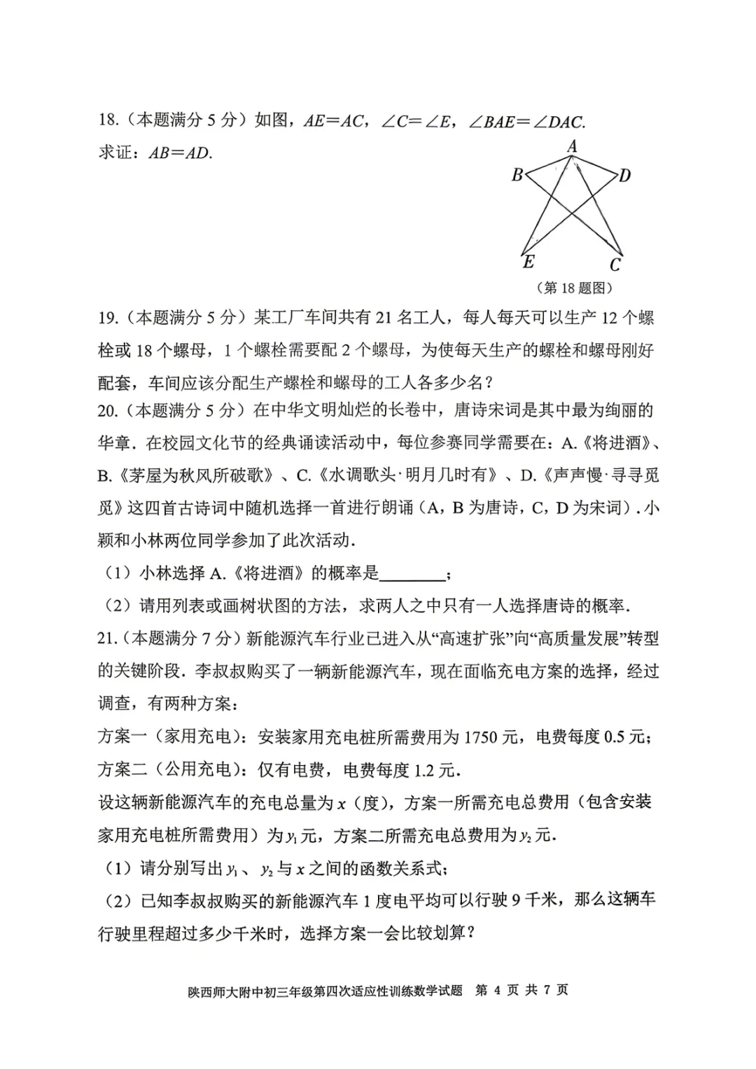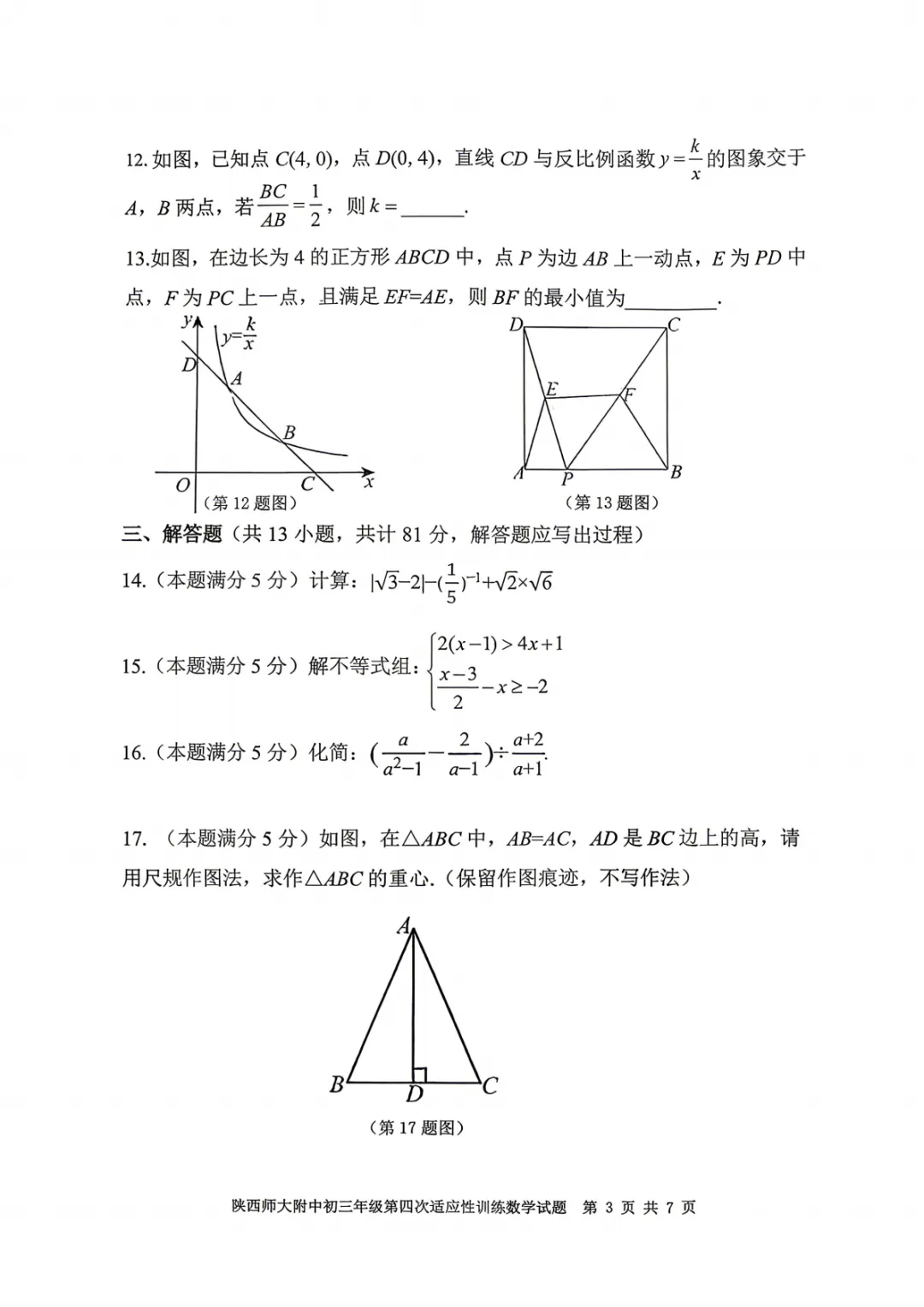 师大附中四模数学试卷