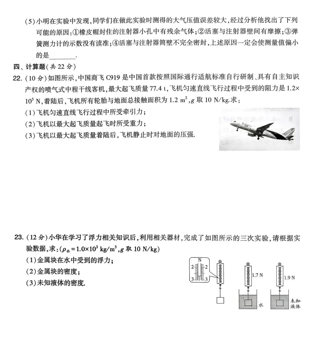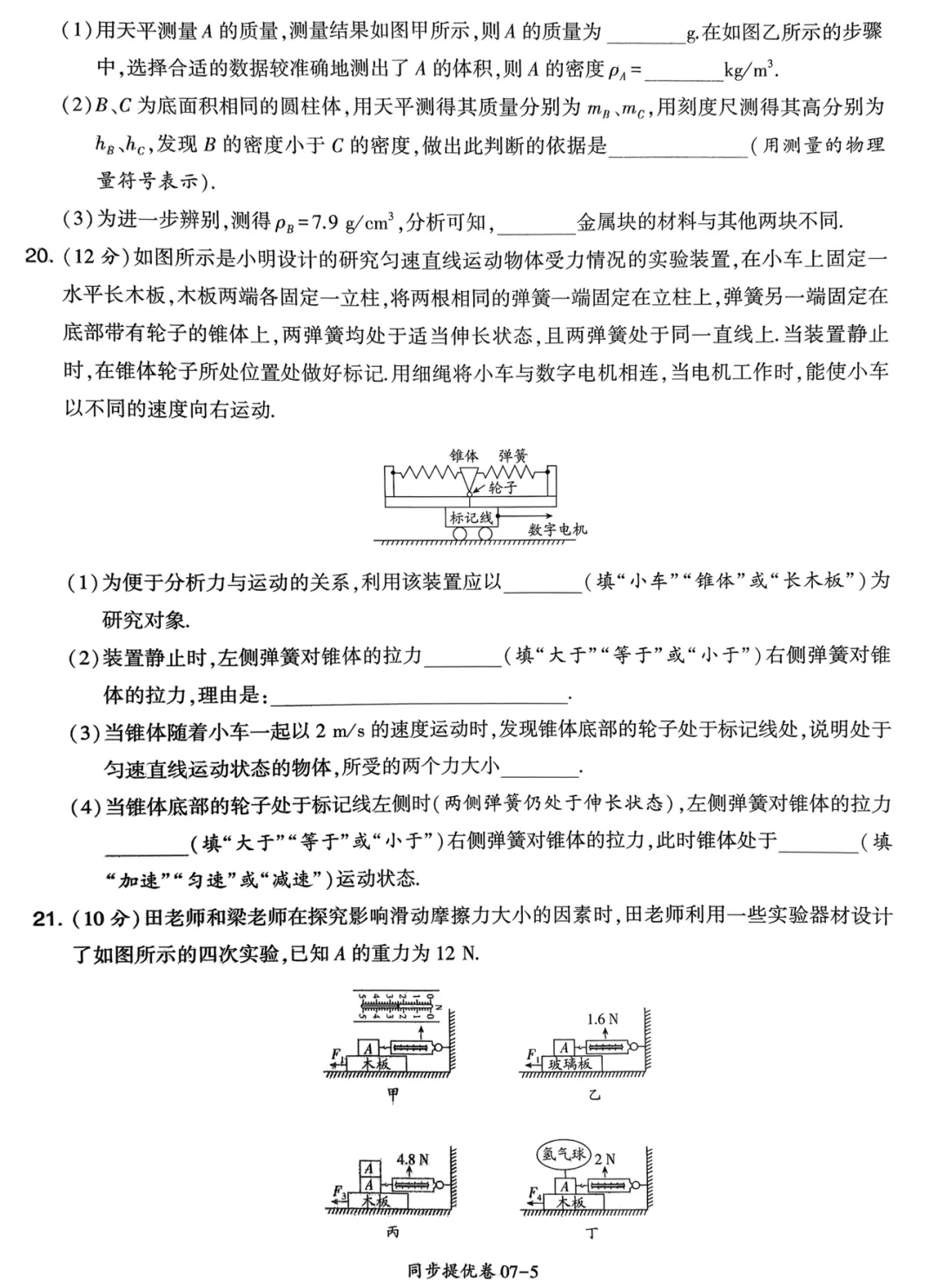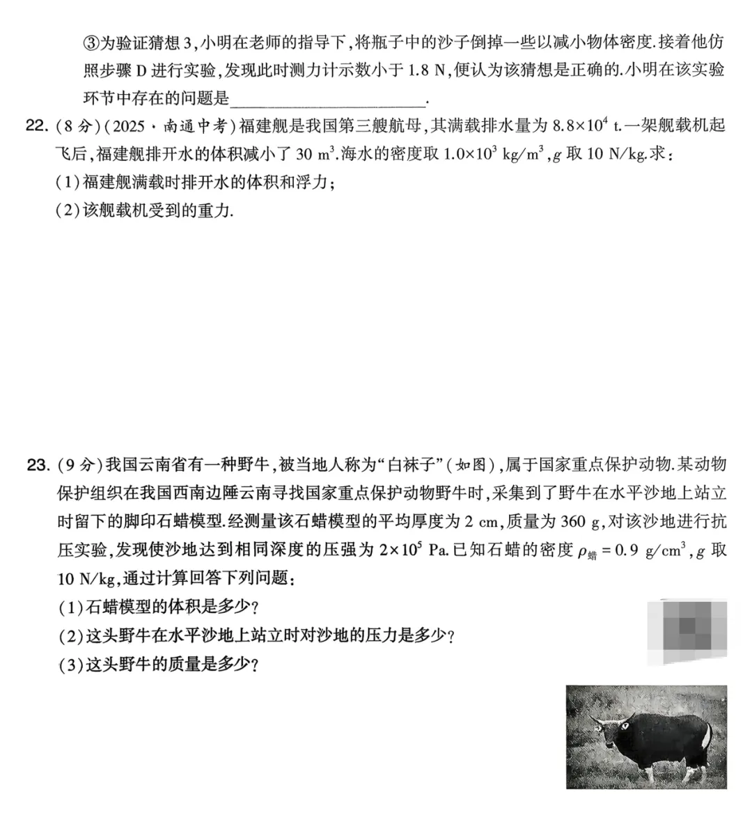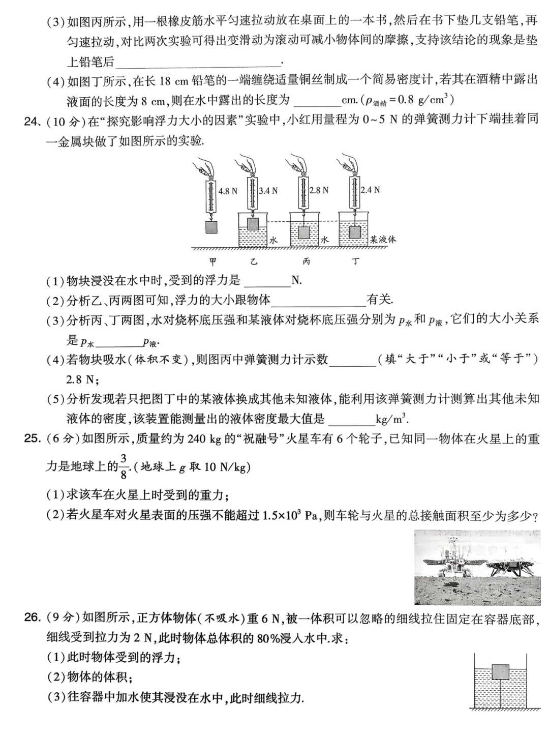 2026《初中物理•学霸提优大试卷》8下(SK)2026《初中物理•学霸提优大试卷》8下(SK)答案