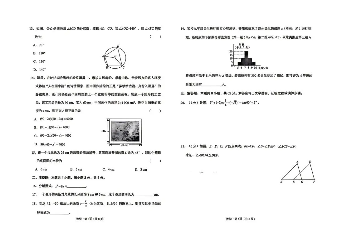 2026.4安实中八下数学期中考试卷(浙教版)