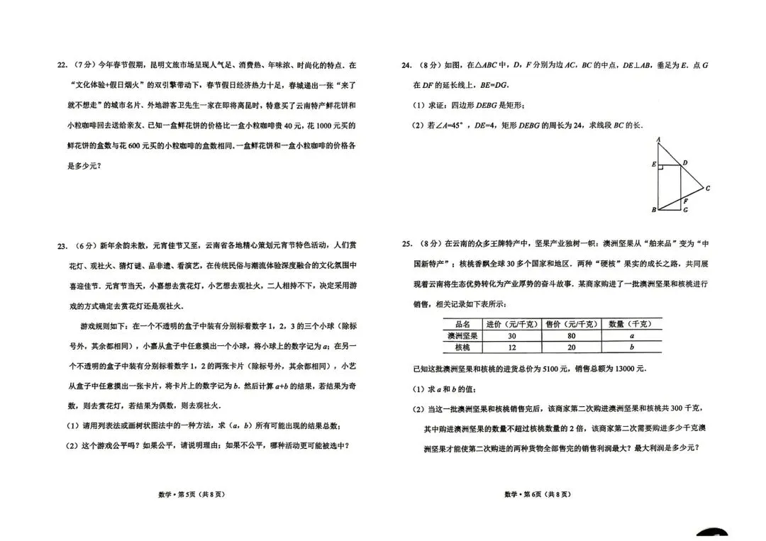 >勐海县一模数学试卷+答案