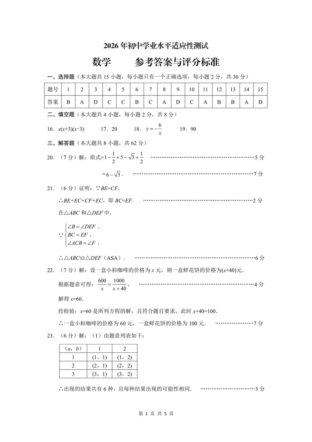 26初三二模试卷及专题汇编精校(15区9答案)